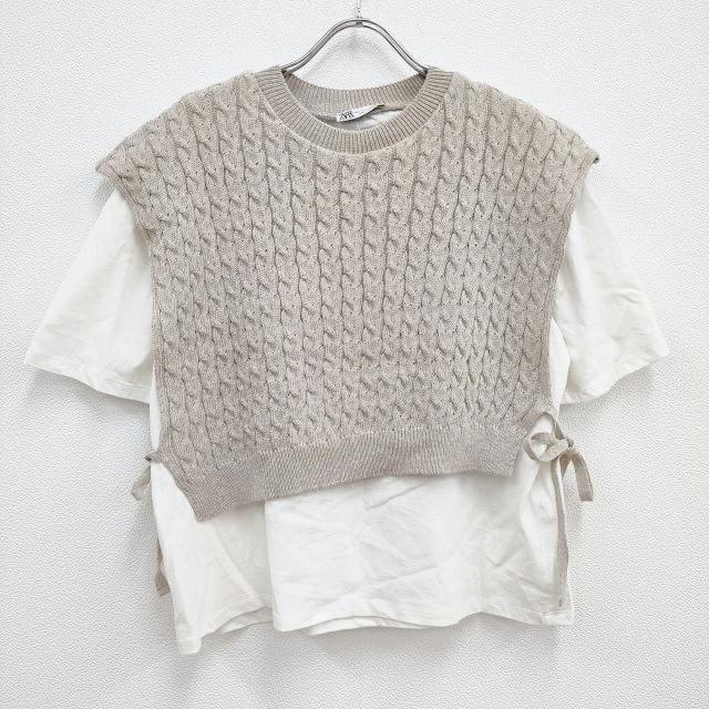 ZARA Layered Docking Cable Knit Sweater, EUR L/USA/L/MEX Size 30, Beige/White, Women's, Pre-owned, 3-0815S
