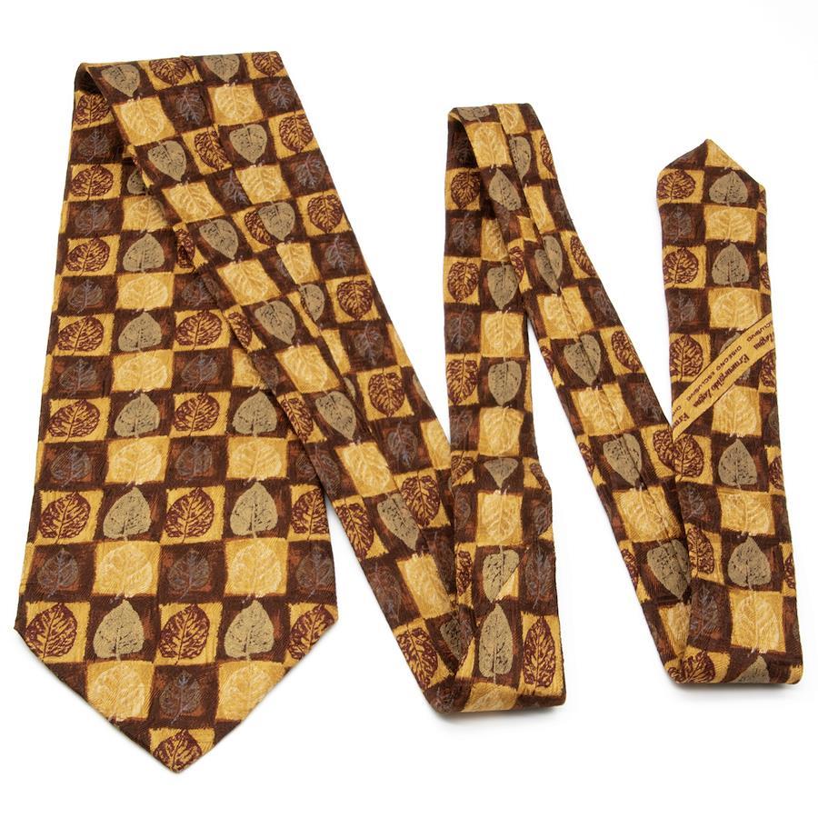 ブラウンとイエローのタイル柄の中に、美しい葉の模様がデザインされた、大変季節感あふれる一本です。