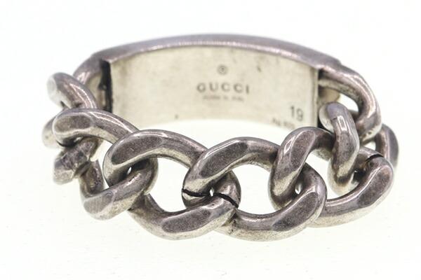 ■グッチリングゴルメットチェーンリング678711シルバーグリーンSVスターリングシルバー925サイズ19中古指輪アクセサリージュエリーメンズGUCCI