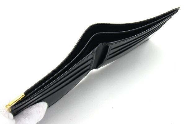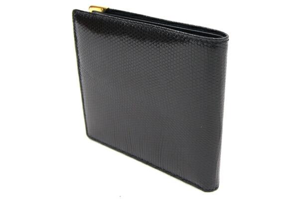グッチ二つ折り札入れ034・3281・0686・0ブラックゴールド金具リザード中古メンズ紳士小銭入れなしヴィンテージシャイニーとかげエキゾチックレザーGUCCI