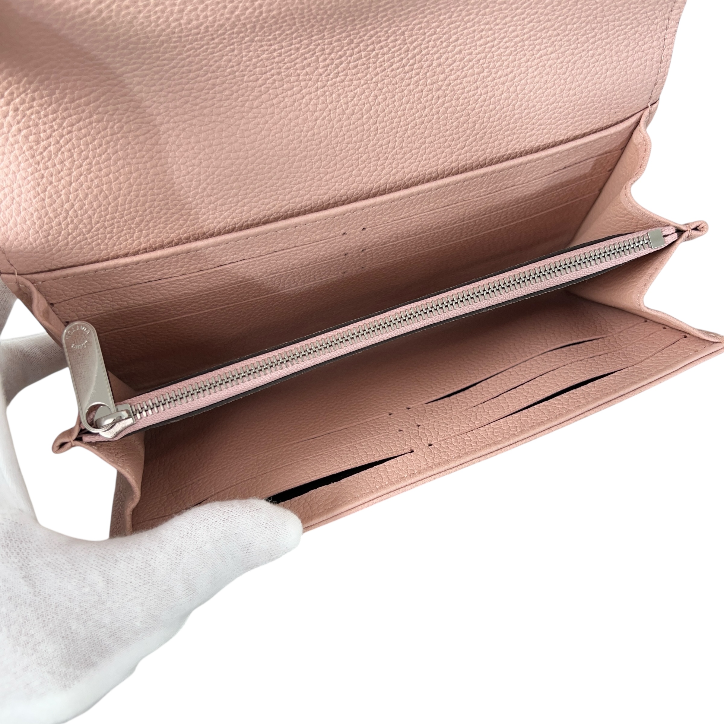 Excellent condition Louis Vuitton Mahina Portefeuille Sarah long wallet in pink. k0046