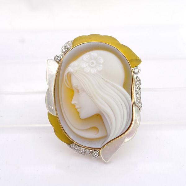 ・アピールコメント:繊細に彫刻されたカメオに、ダイヤモンドを添えた上品なペンダントトップです。