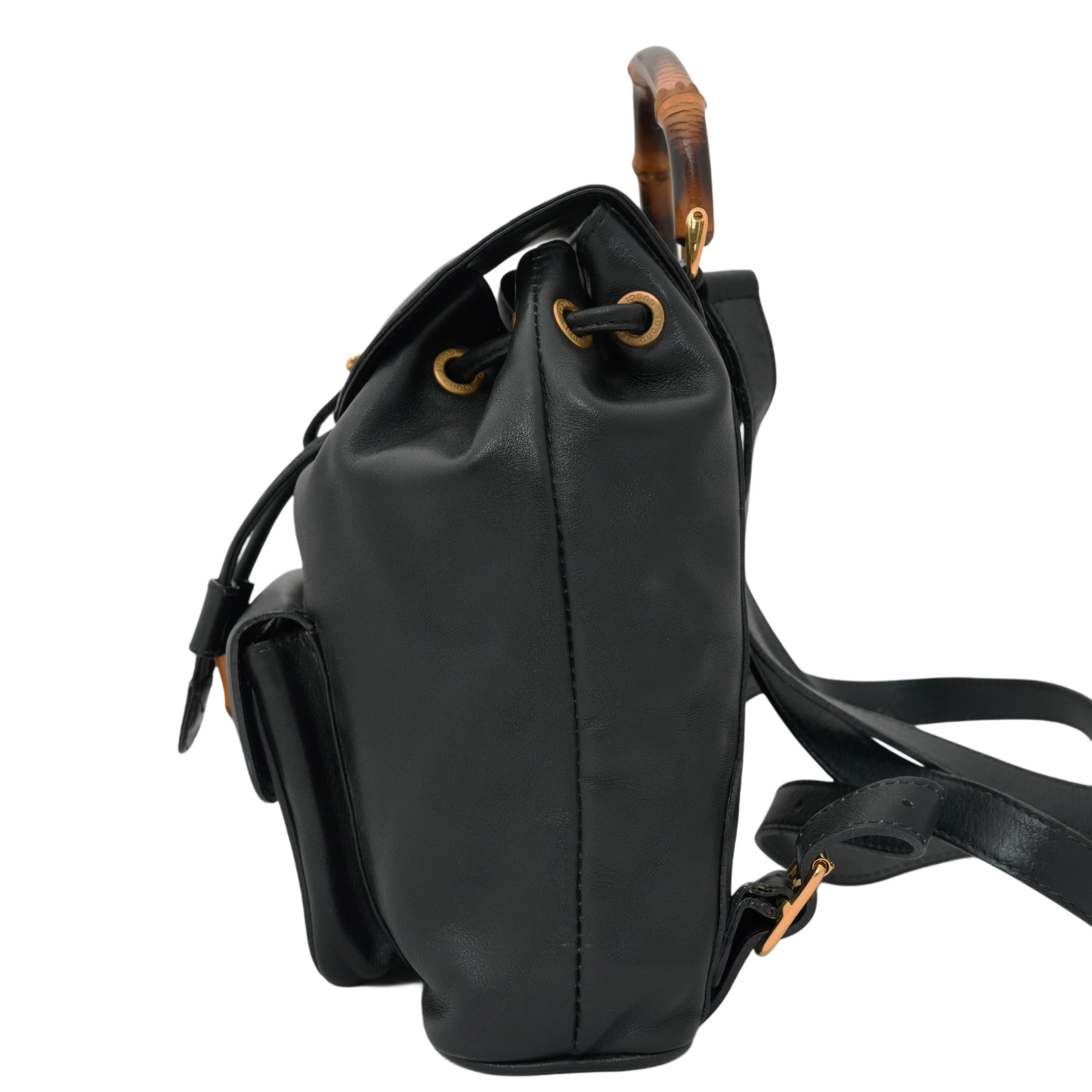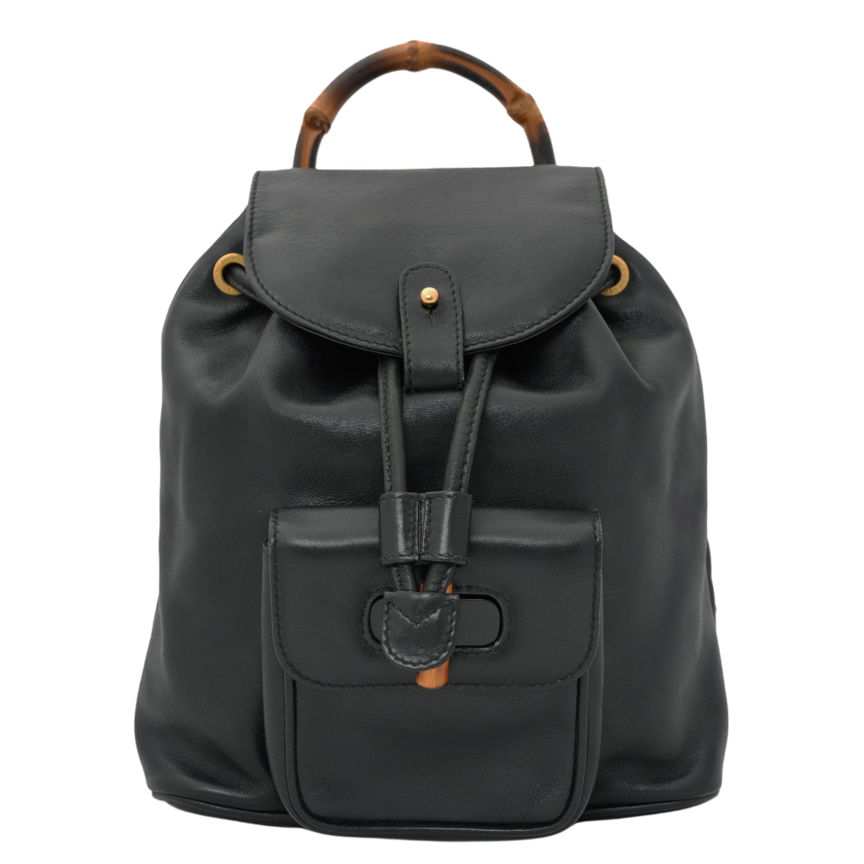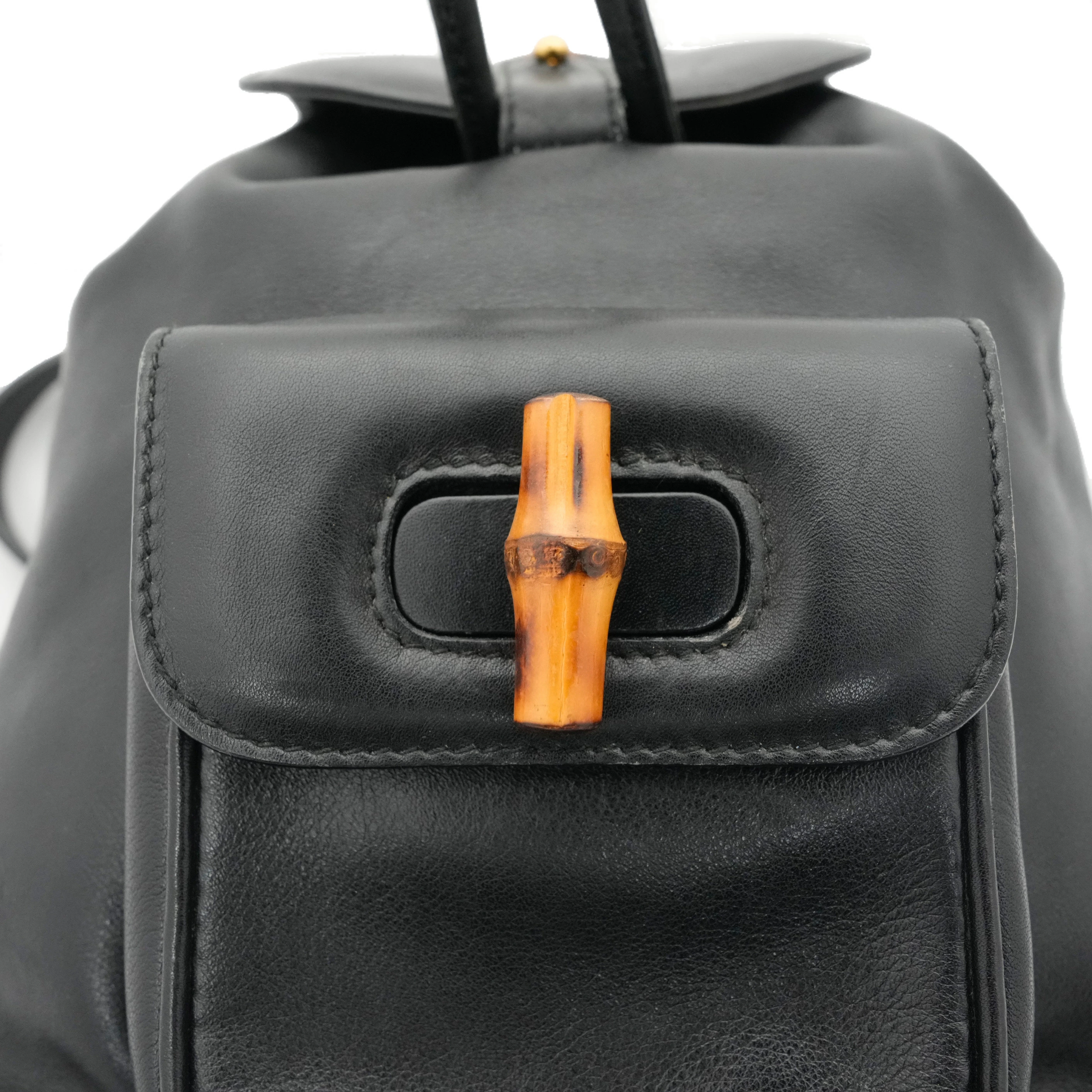 【中古・VINTAGE】GUCCI グッチ バンブー リュックミニ レザー ブラック ヴィンテージ Bamboo Mini Backpack