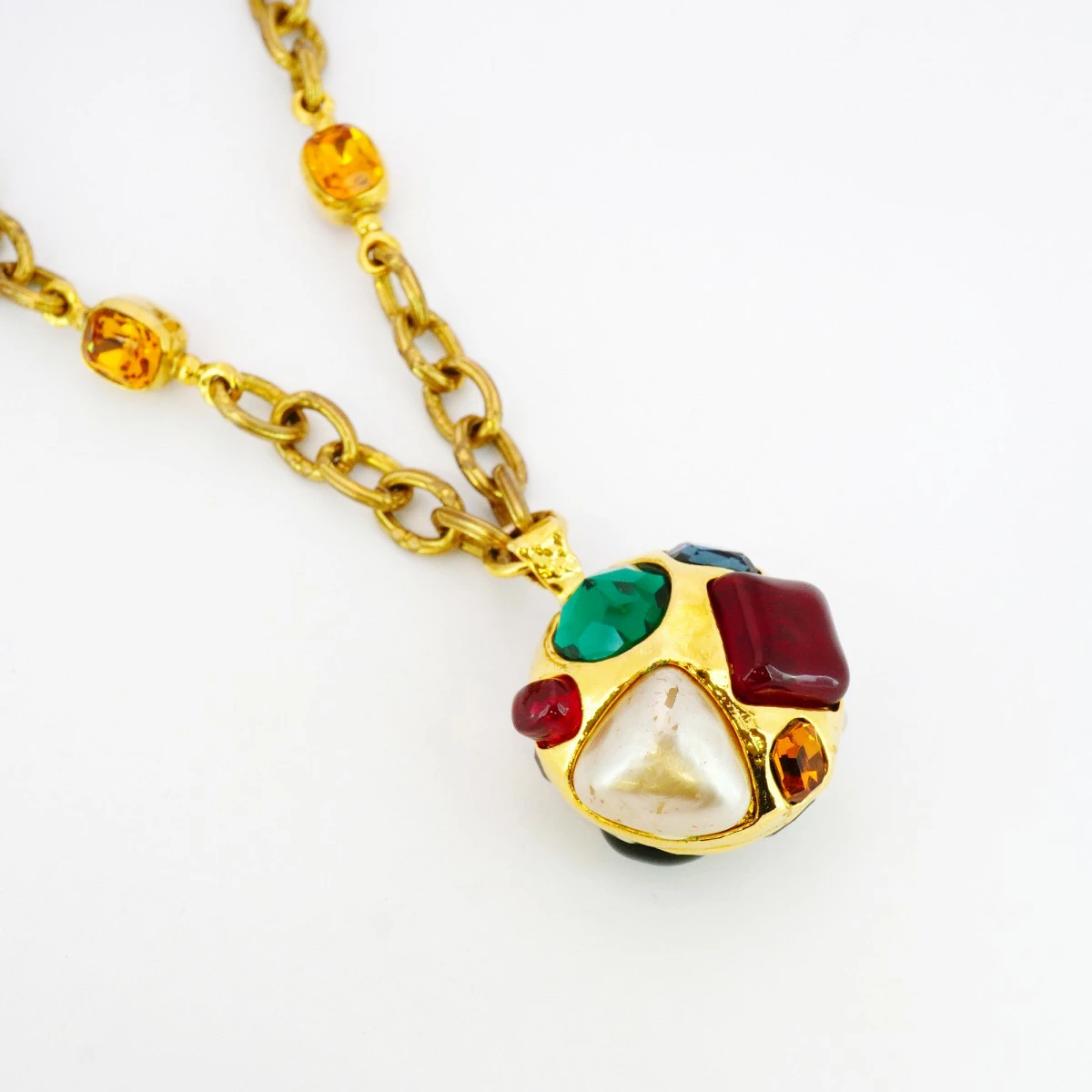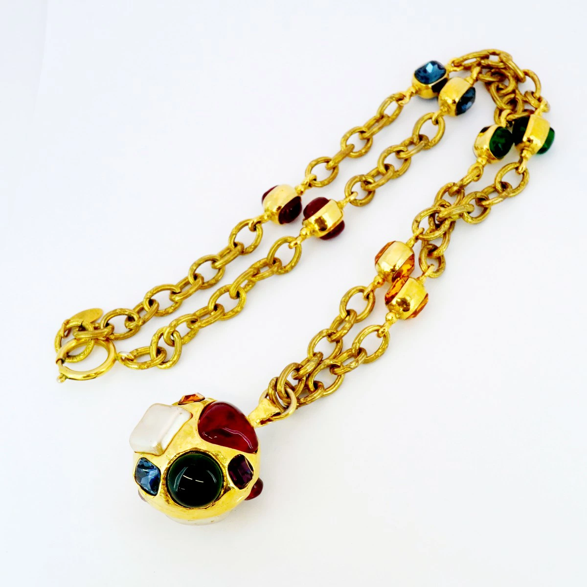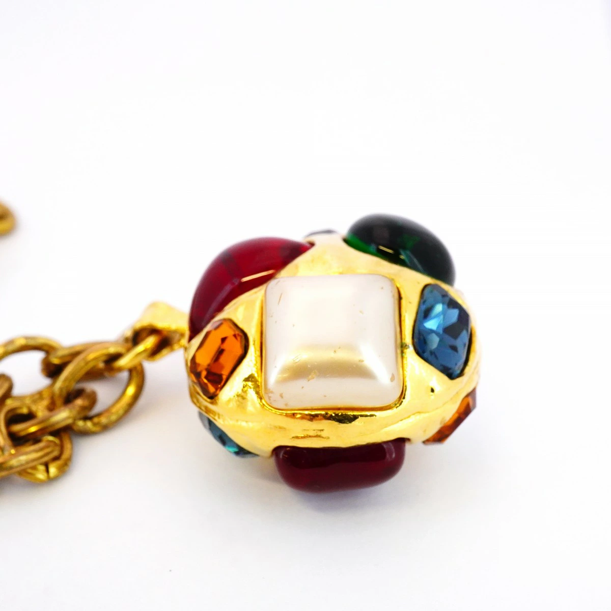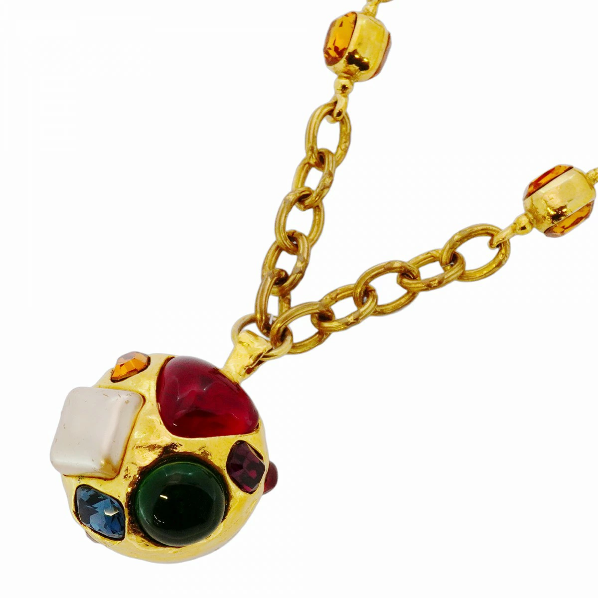 ★最終価格★SALE【5jib0818】シャネル ネックレス ヴィンテージ グリポア 丸型 サークル GPメッキ フェイクパール カラーストーン ゴールド マルチカラー【中古】レディース