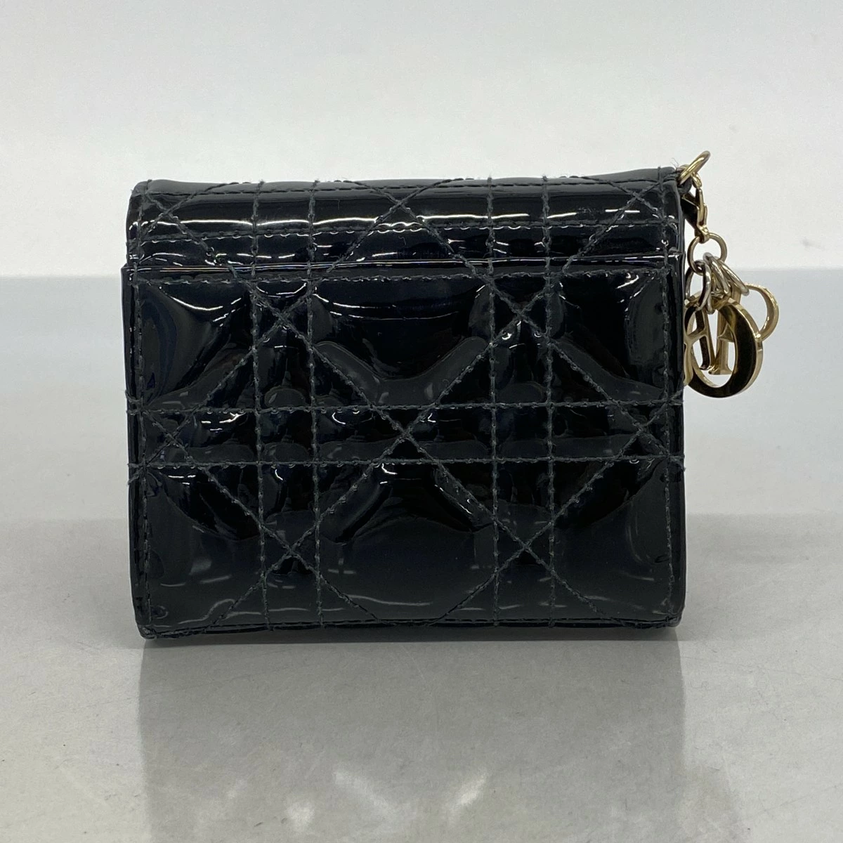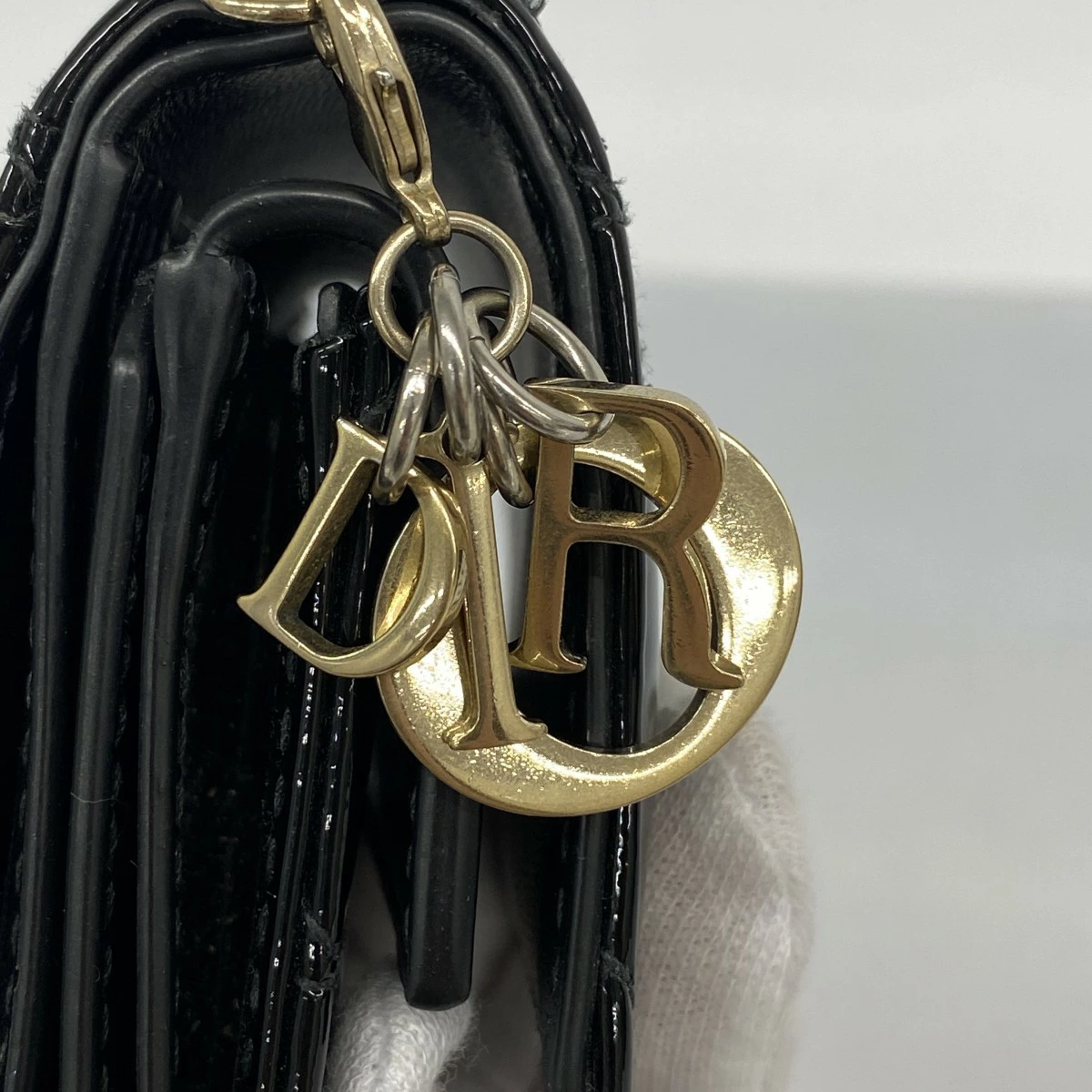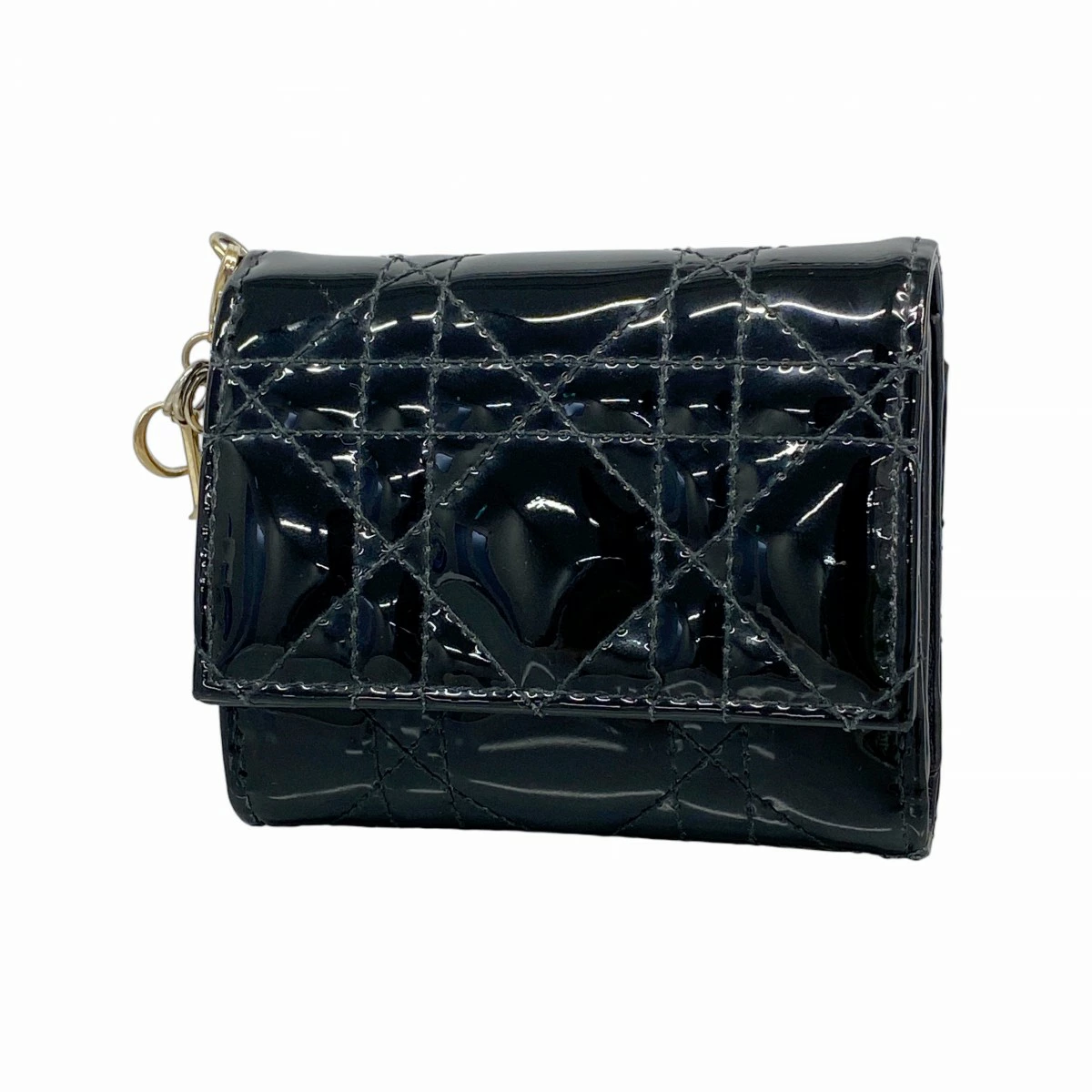 ★最終価格★SALE【5mb2152-h】クリスチャンディオール 三つ折り財布 カナージュ エナメル ブラック シャンパンゴールド金具【中古】レディース