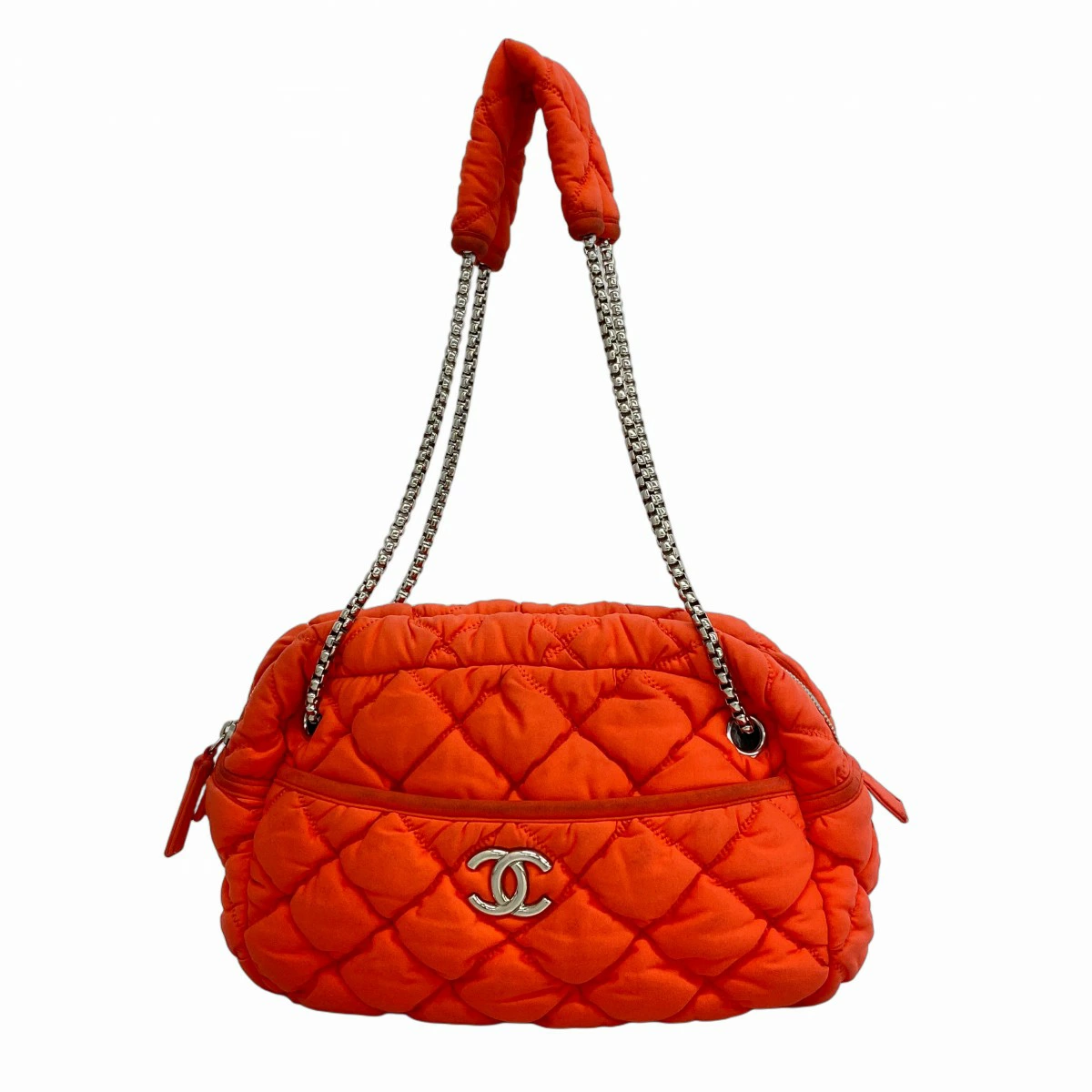 ★最終価格★SALE【5mb2295-h】シャネル ショルダーバッグ チェーンショルダー バブルキルト ナイロン レッド シルバー金具【中古】レディース