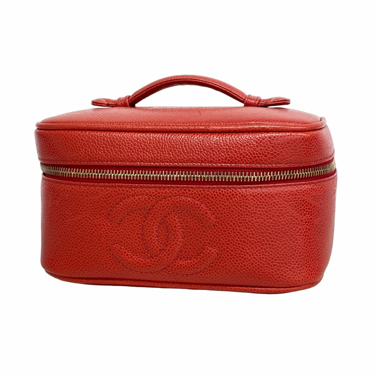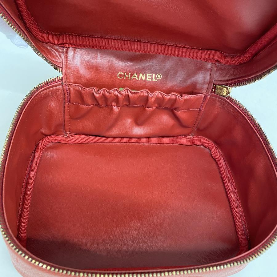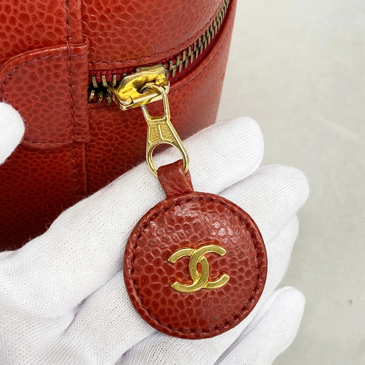 ★最終価格★SALE【5mb2296-h】シャネル バニティバッグ キャビアスキン レッド ゴールド金具【中古】レディース