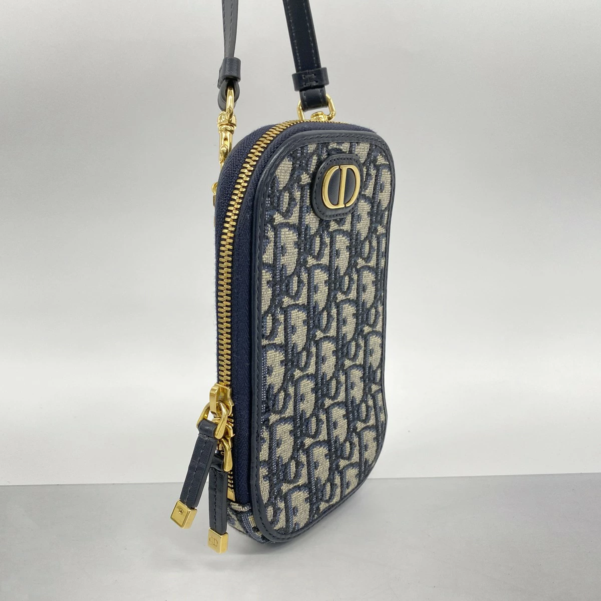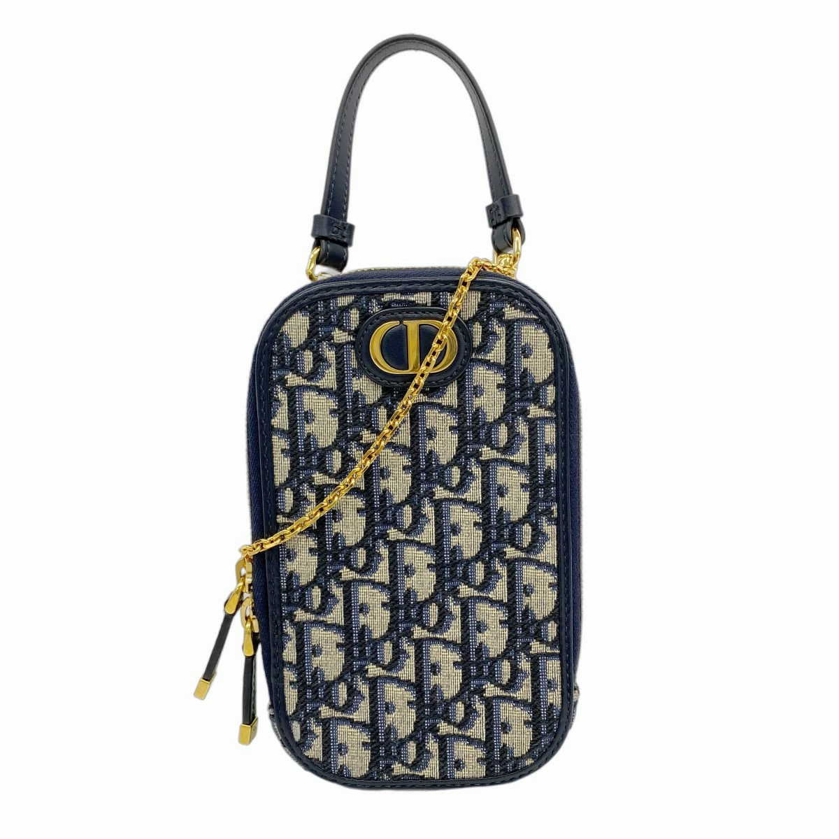 ★最終価格★SALE【5mc2904】クリスチャンディオール フォンホルダー トロッター オブリーク キャンバス ネイビー ゴールド金具【中古】レディース
