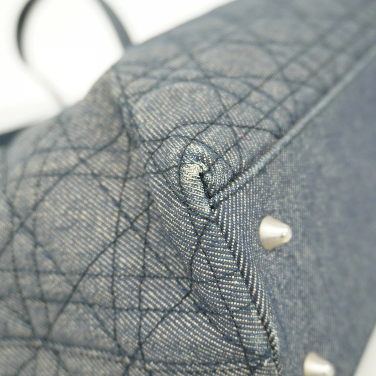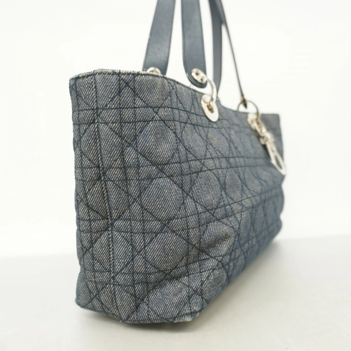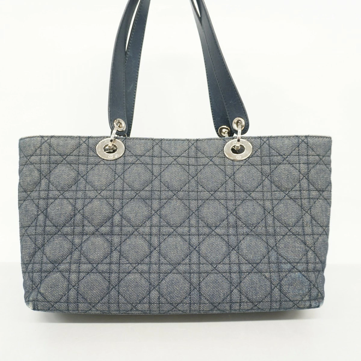 [5md4277] Christian Dior Cannage Denim Handbag in Navy with Silver Hardware [Pre-owned] Women's