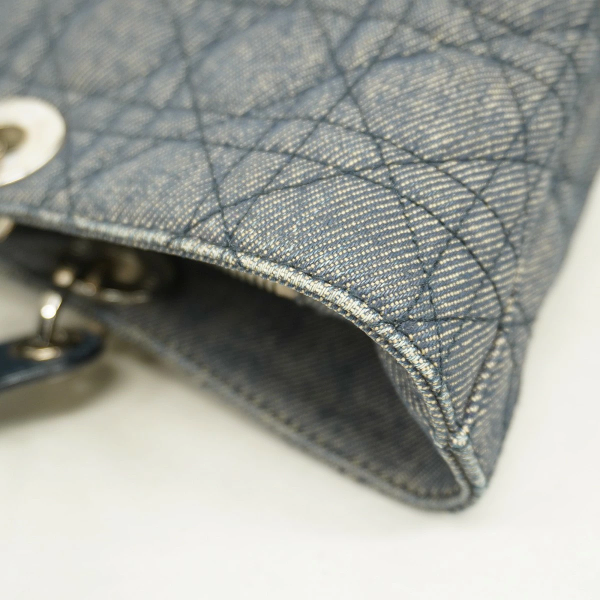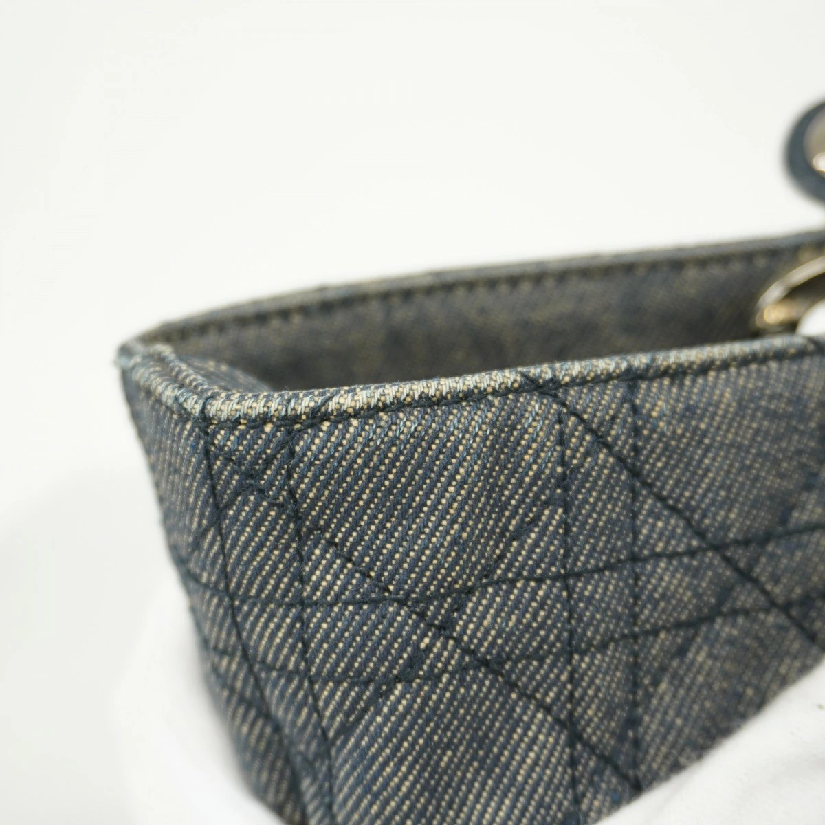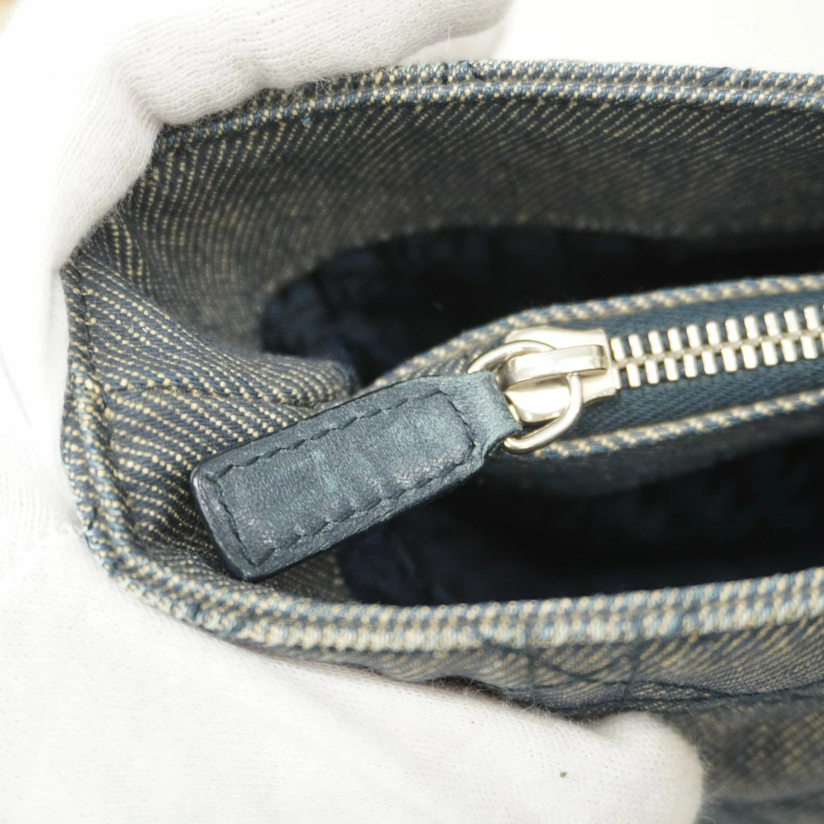 [5md4277] Christian Dior Cannage Denim Handbag in Navy with Silver Hardware [Pre-owned] Women's