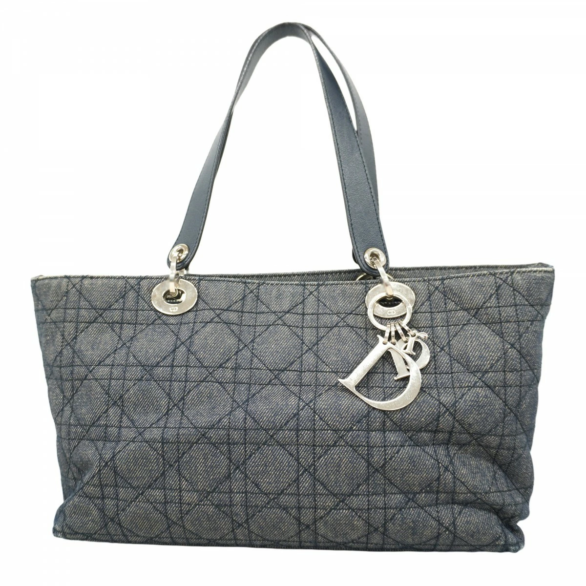 ★最終価格★SALE【5md4277】クリスチャンディオール ハンドバッグ カナージュ デニム ネイビー シルバー金具【中古】レディース