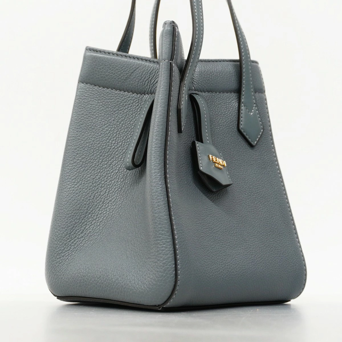 ★最終価格★SALE【5me6152-h】フェンディ ショルダーバッグ オリガミ レザー グレー ブルー ゴールド金具【中古】レディース