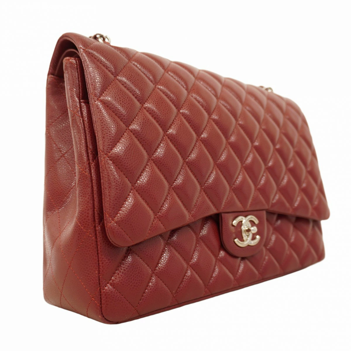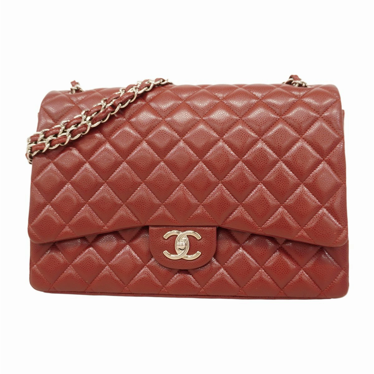 ★最終価格★SALE【5ob0358-h】シャネル ショルダーバッグ デカマトラッセ Wフラップ Wチェーン キャビアスキン ボルドー シルバー金具【中古】レディース