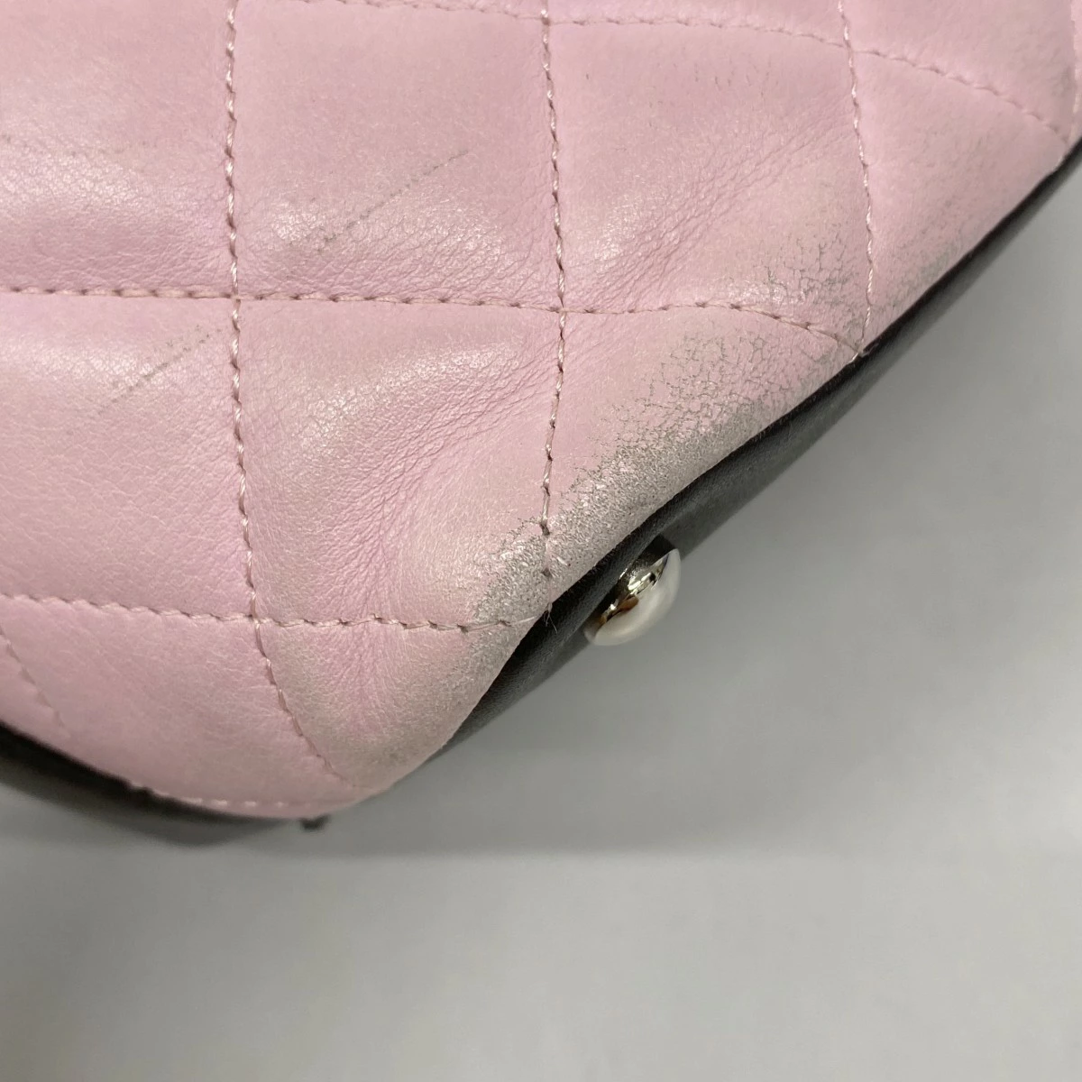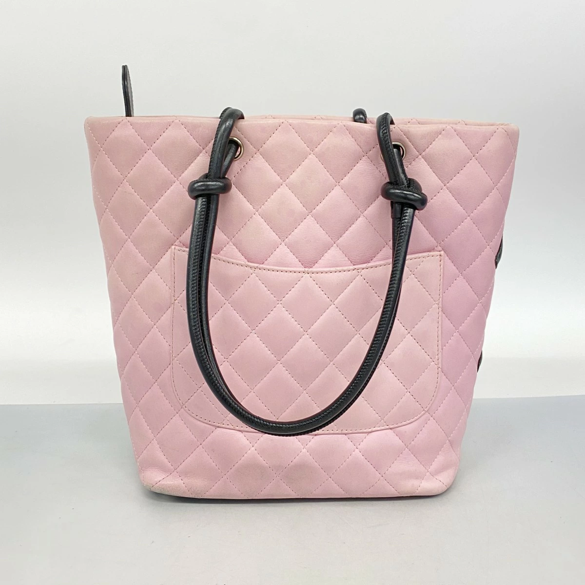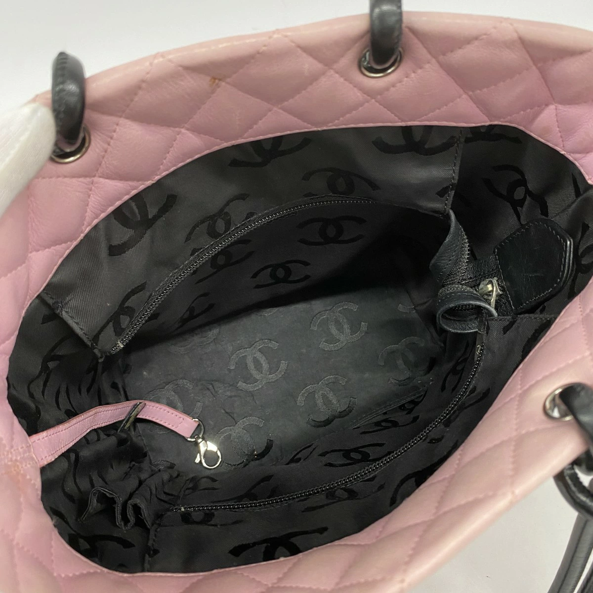 ★最終価格★SALE【5ob0467-h】シャネル トートバッグ カンボン ラムスキン ピンク ブラック シルバー金具【中古】レディース
