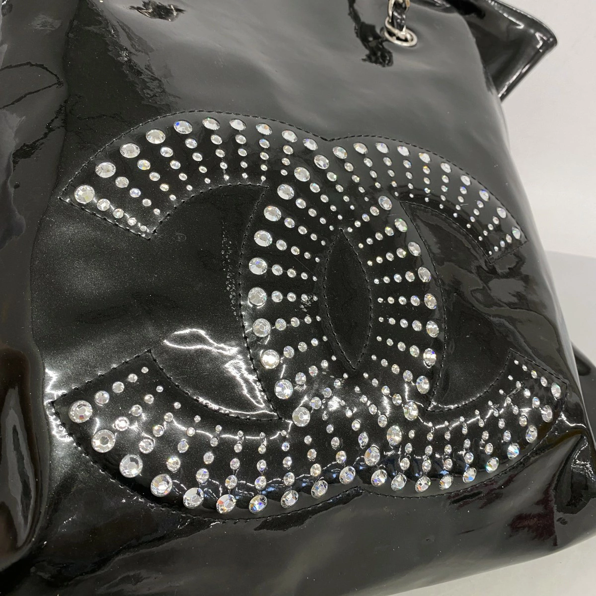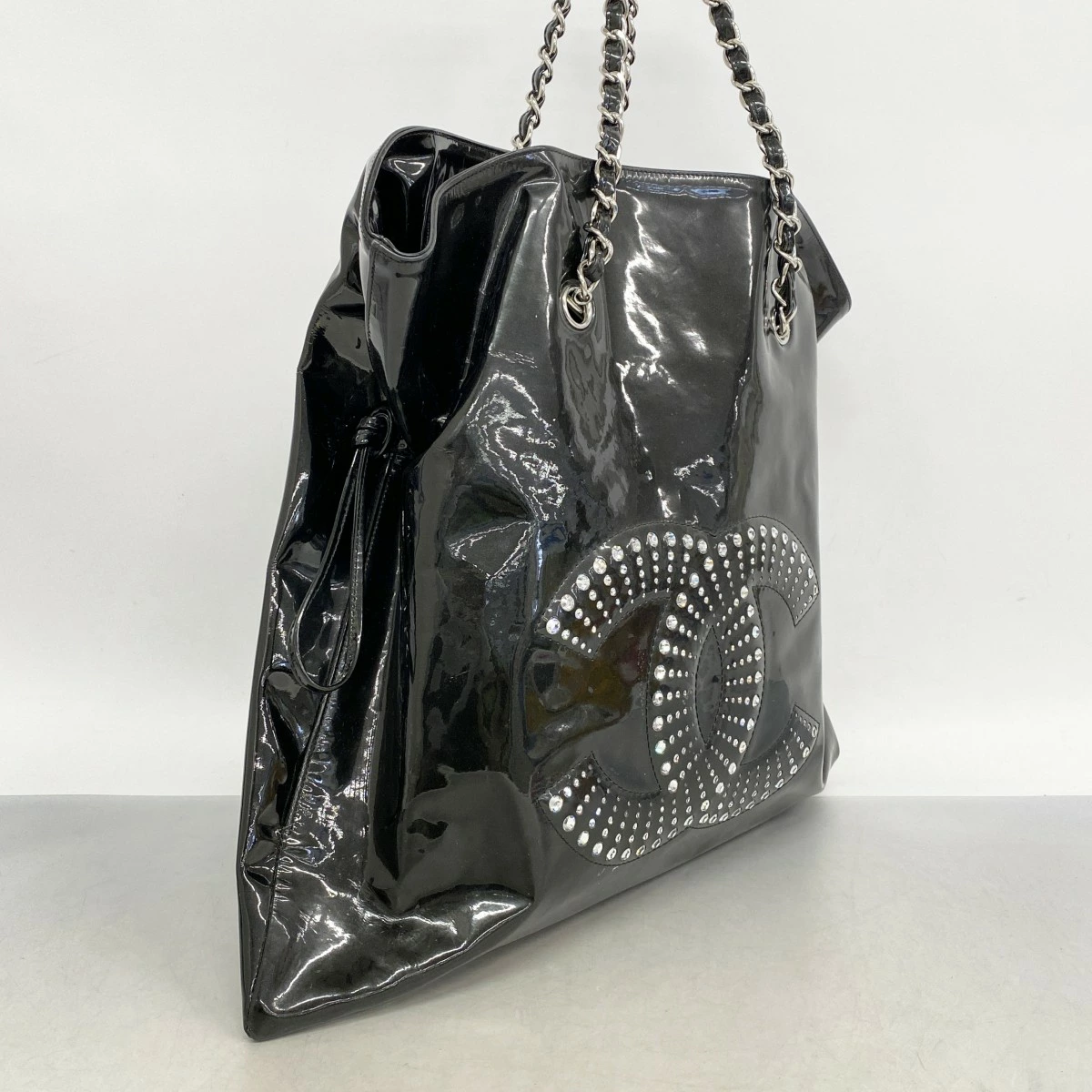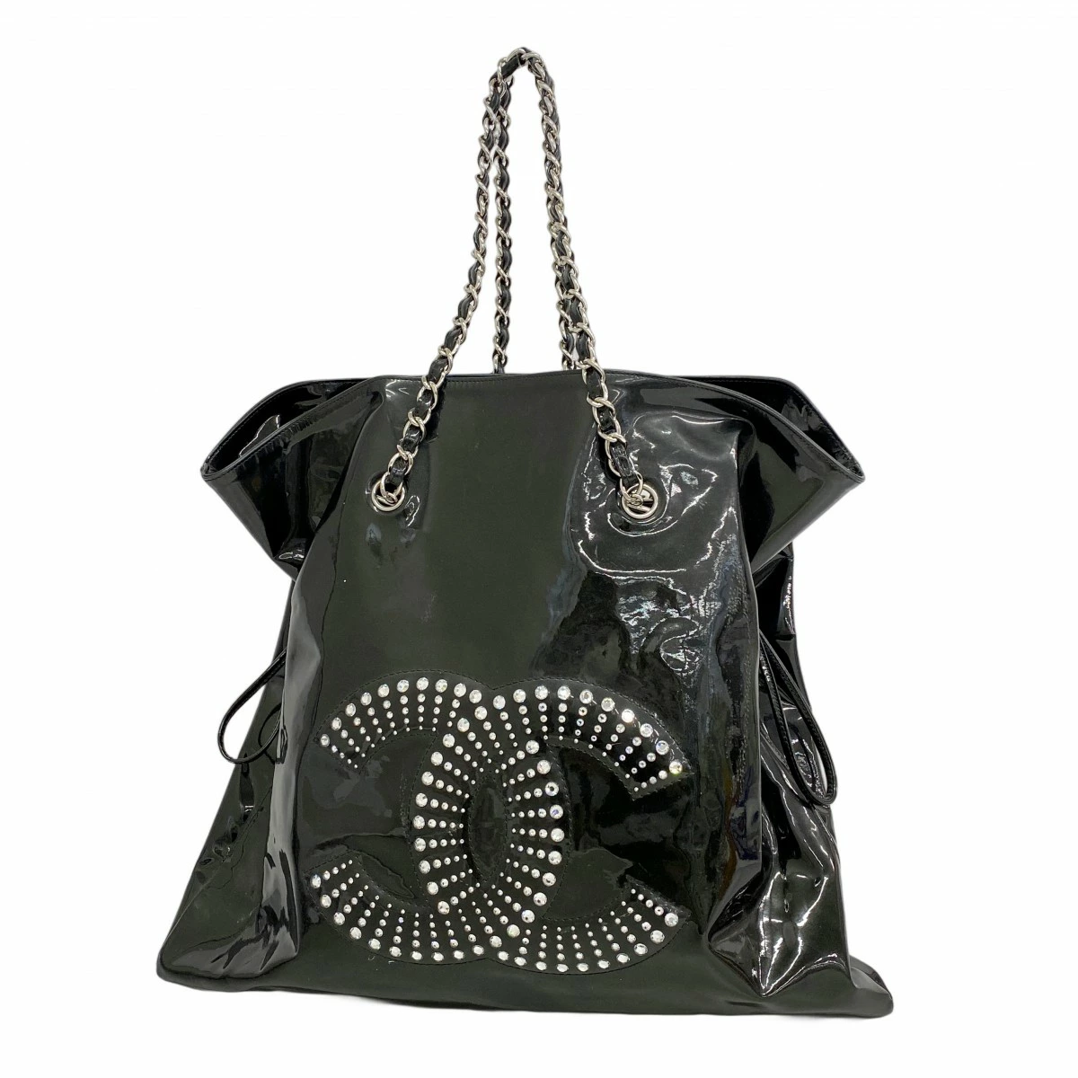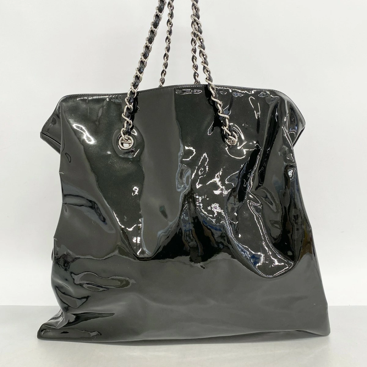 ★最終価格★SALE【5ob0753-h】シャネル トートバッグ パテントレザー ブラック シルバー金具 チェーン【中古】レディース