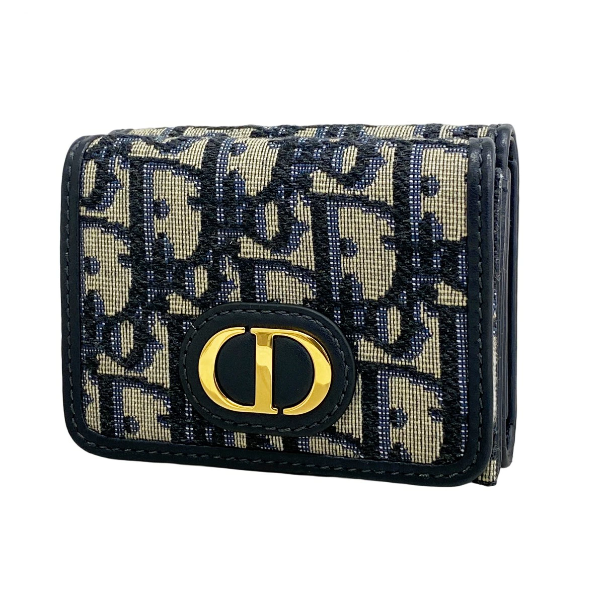 ★最終価格★SALE【5od3619】クリスチャンディオール 三つ折り財布 オブリーク ジャガード キャンバス ネイビー ゴールド金具【中古】レディース