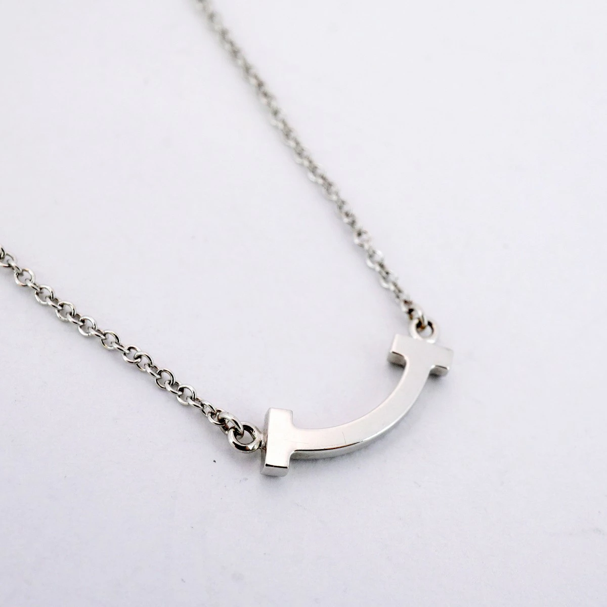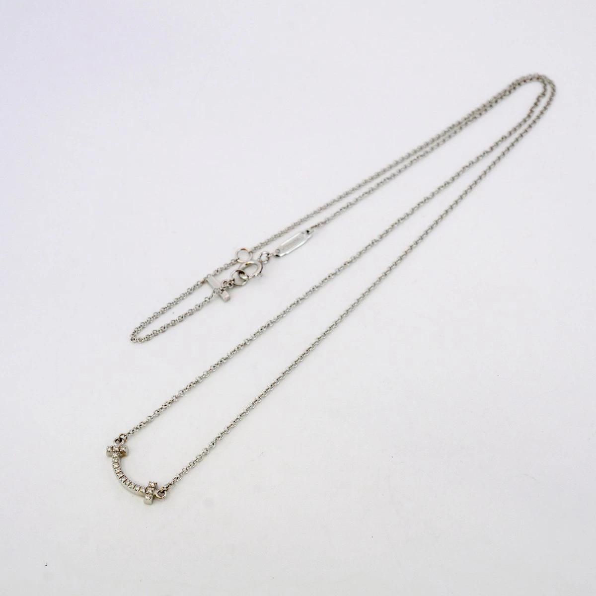 ★最終価格【5jib0748】ティファニー ネックレス Tスマイル ミニ K18WG ホワイトゴールド ダイヤモンド【中古】レディース