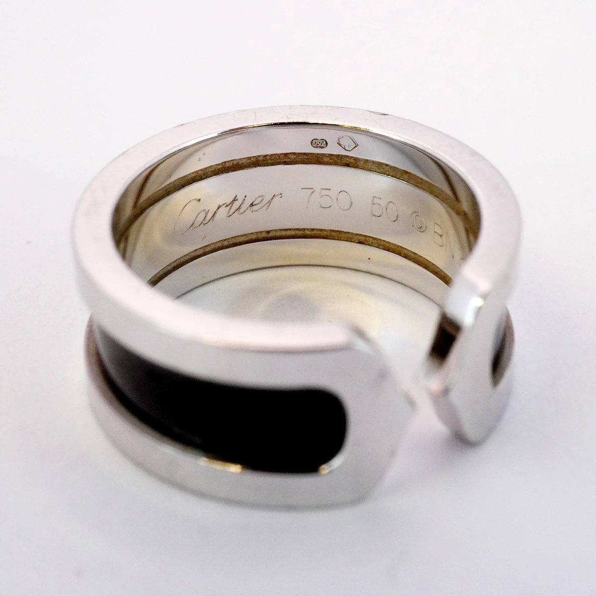 ★最終価格【5jmb0163】カルティエ リング 2C K18WG ホワイトゴールド ブラックラッカー #50【中古】メンズ