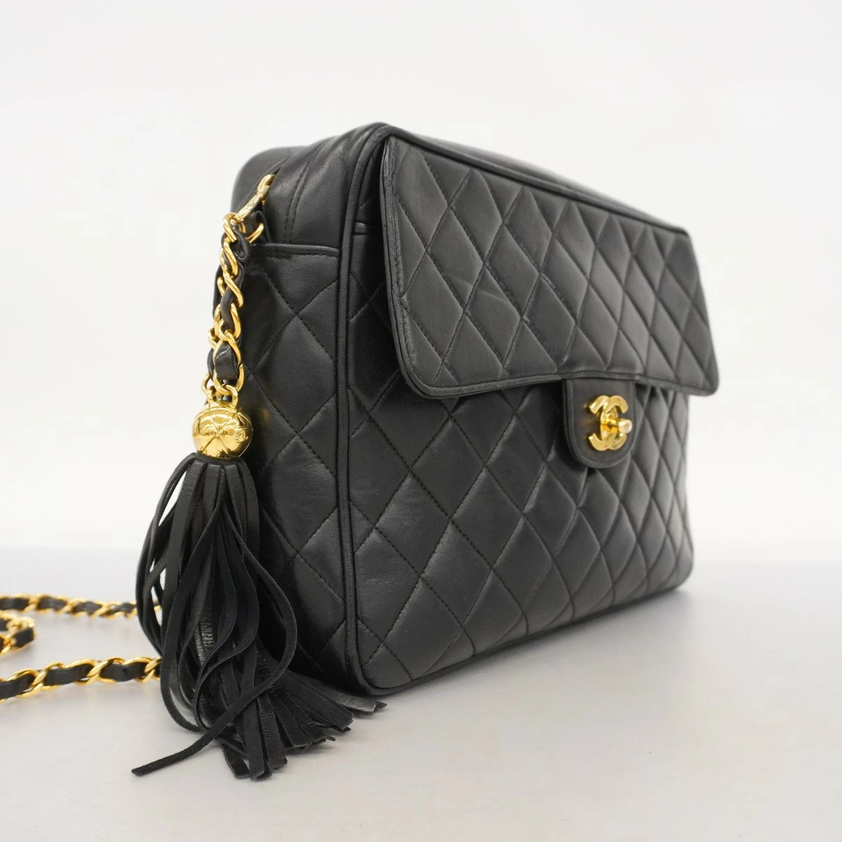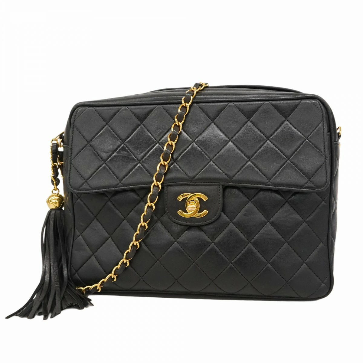 ★最終価格【5ma0521】シャネル ショルダーバッグ マトラッセ フリンジ付きチェーンショルダー ラムスキン ブラック ゴールド金具【中古】レディース
