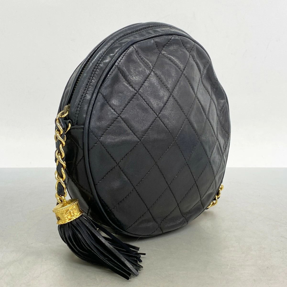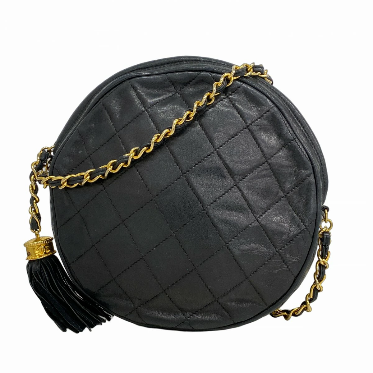 ★最終価格【5ma0708】シャネル ショルダーバッグ マトラッセ フリンジ付きチェーンショルダー ラムスキン ブラック ゴールド金具【中古】レディース