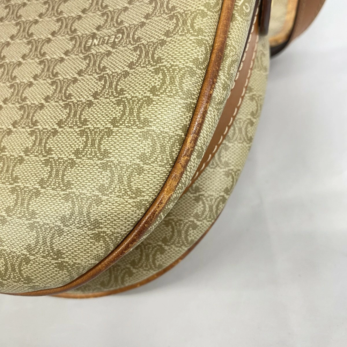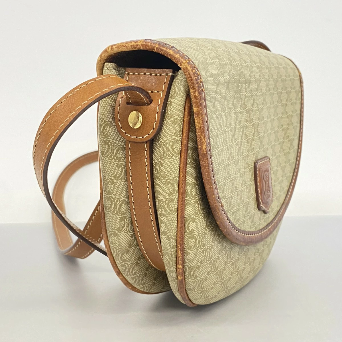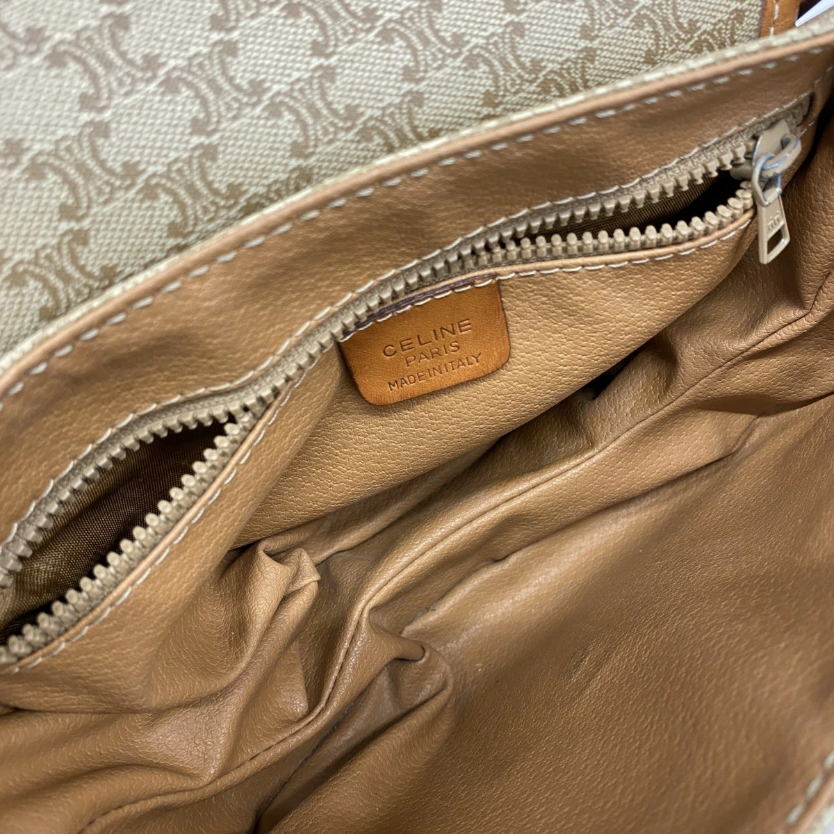 ★最終価格【5mb1071】セリーヌ ショルダーバッグ マカダム PVC ベージュ ブラウン ゴールド金具【中古】レディース