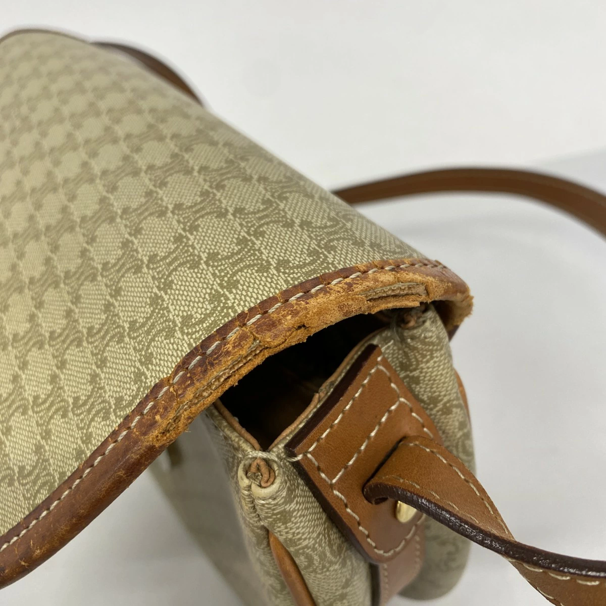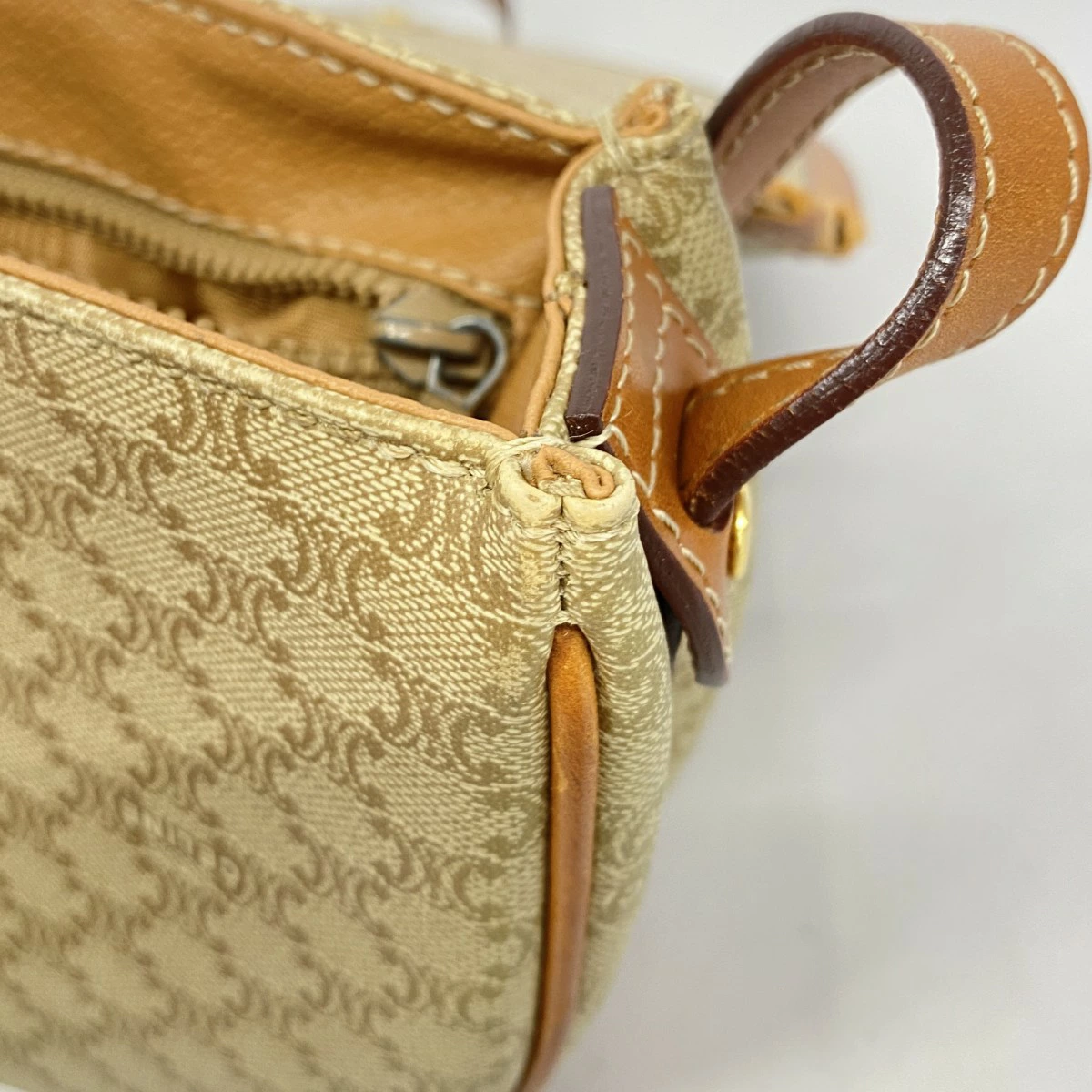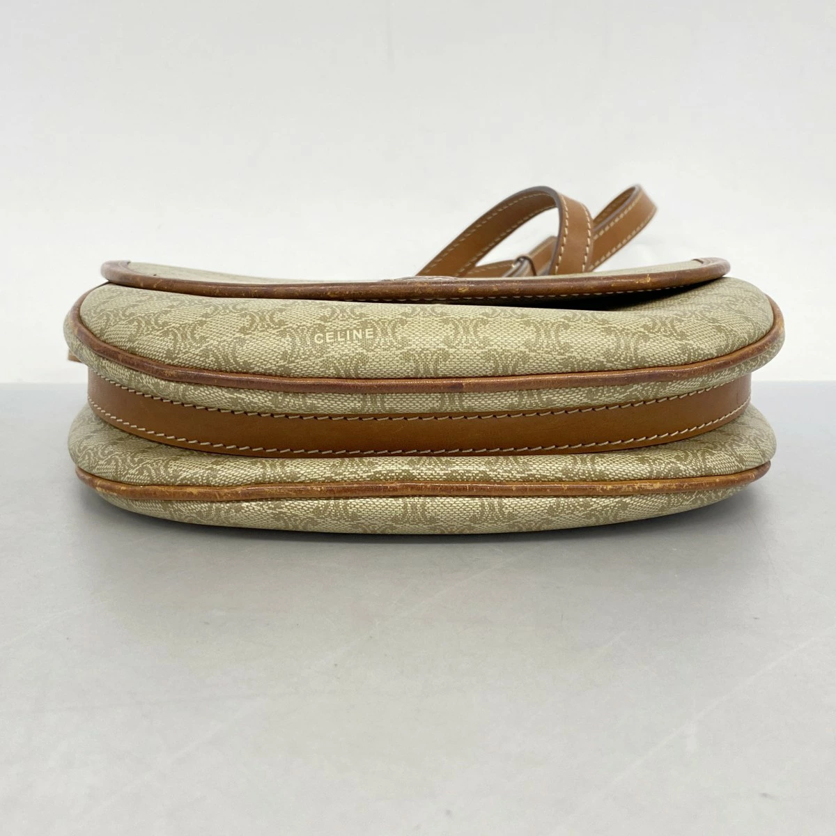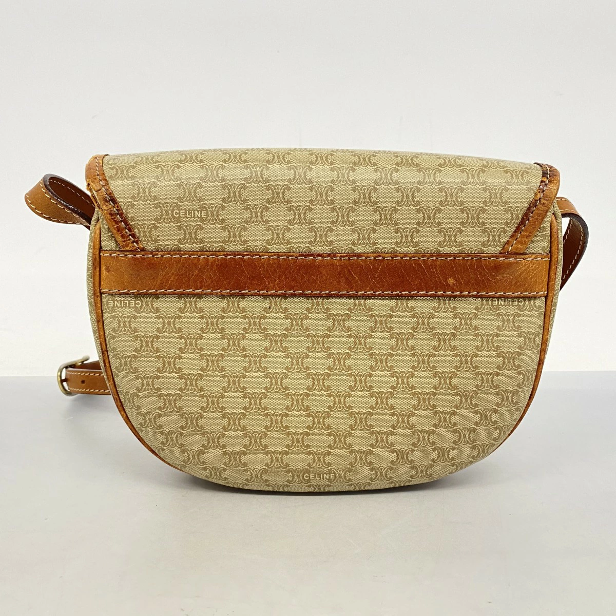 ★最終価格【5mb1071】セリーヌ ショルダーバッグ マカダム PVC ベージュ ブラウン ゴールド金具【中古】レディース