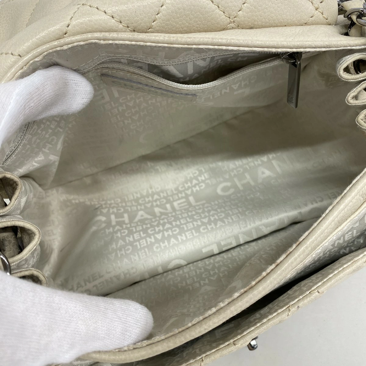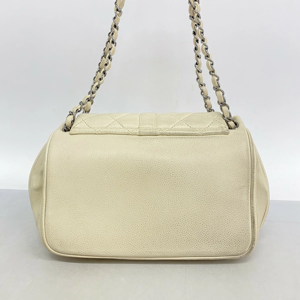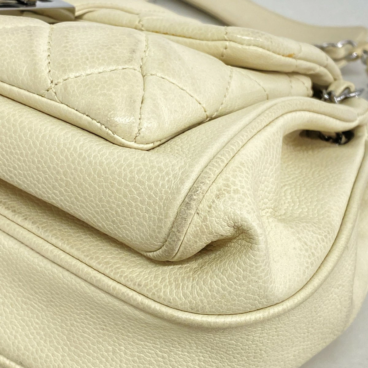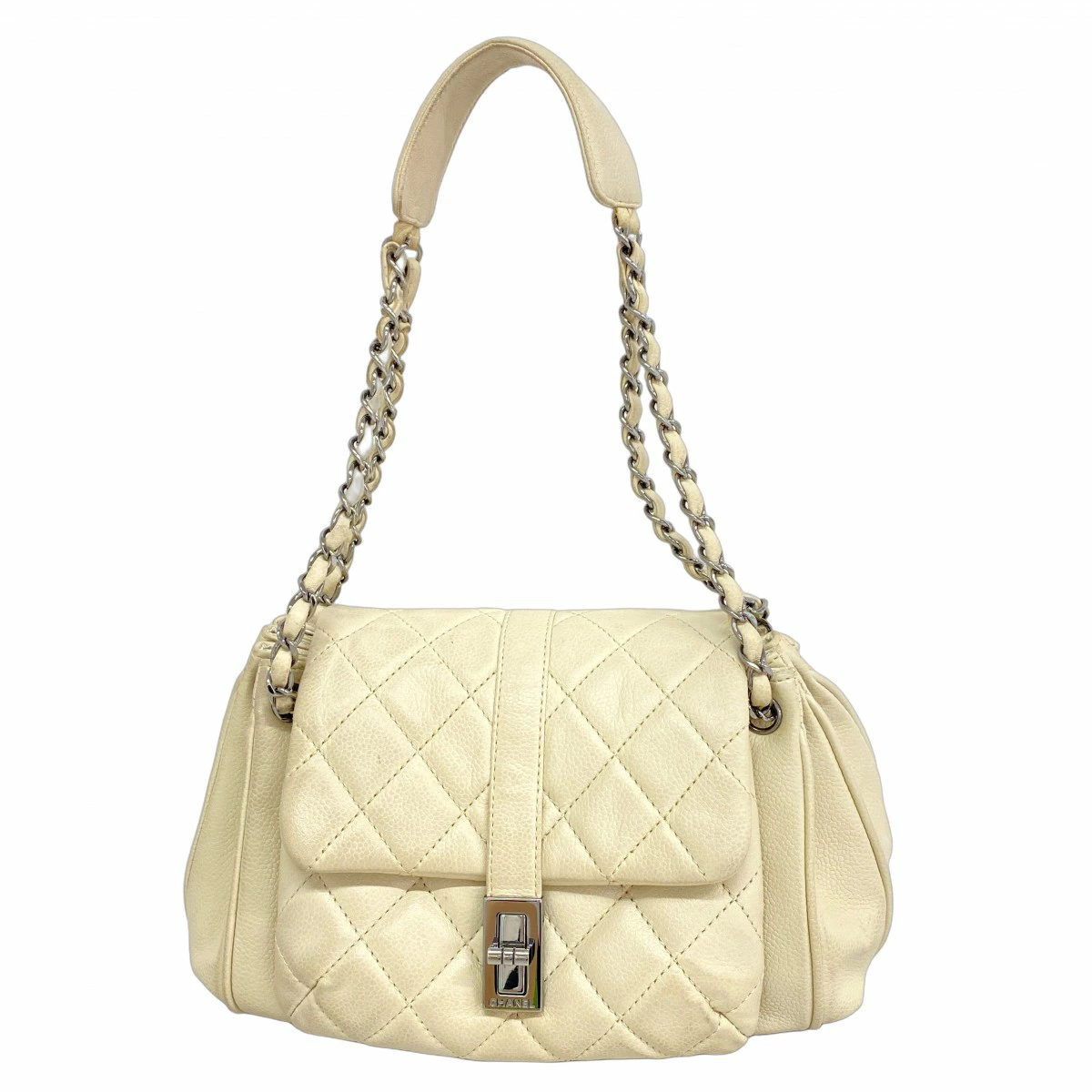 ★最終価格【5mb1125-h】シャネル ショルダーバッグ 2.55/マトラッセ チェーンショルダー キャビアスキン アイボリー シルバー金具【中古】レディース