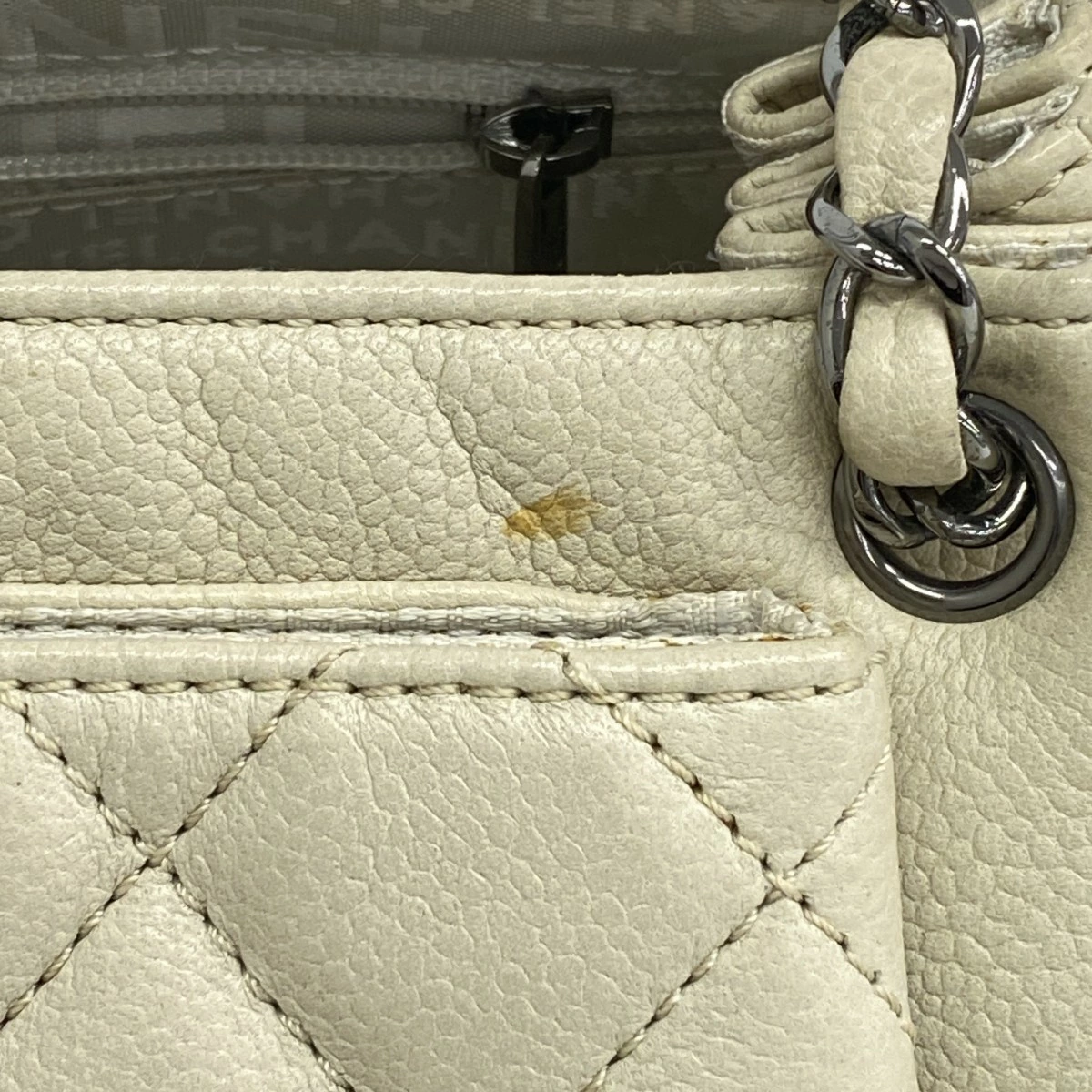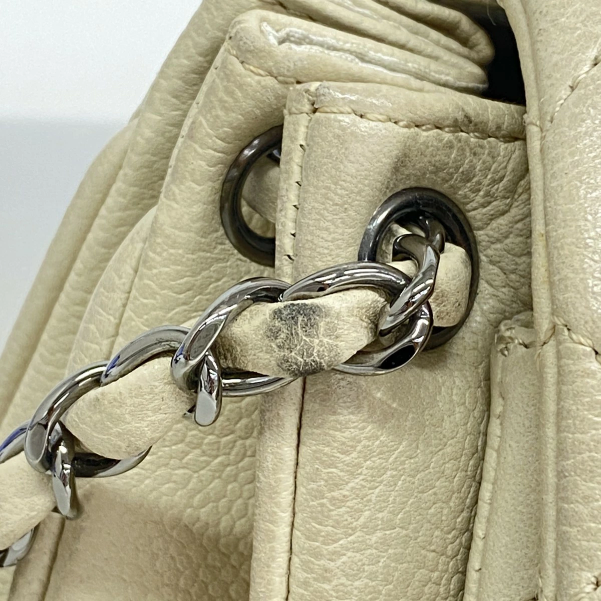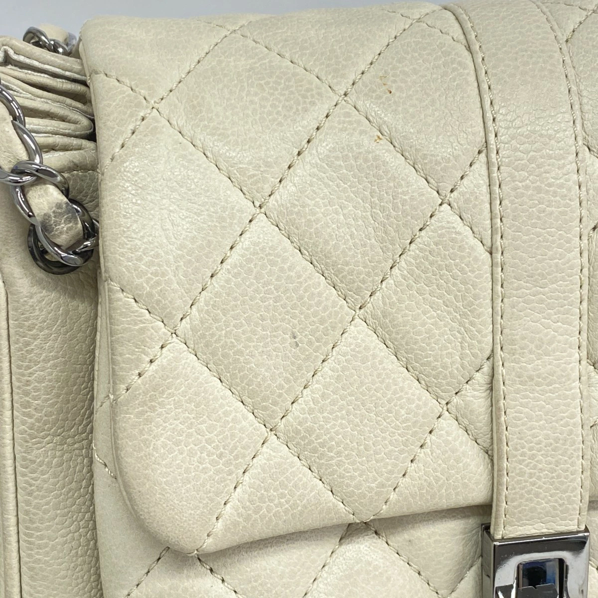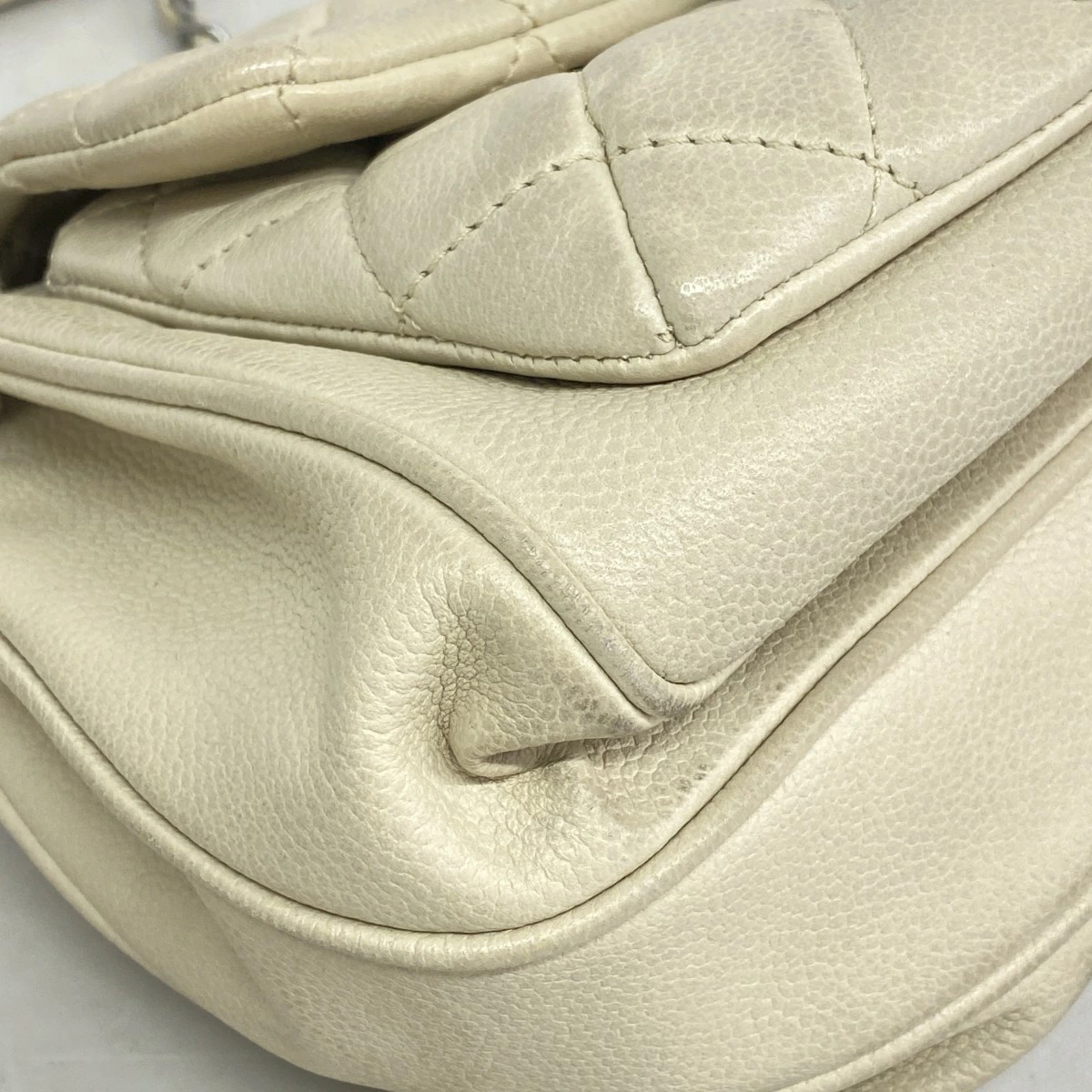 ★最終価格【5mb1125-h】シャネル ショルダーバッグ 2.55/マトラッセ チェーンショルダー キャビアスキン アイボリー シルバー金具【中古】レディース