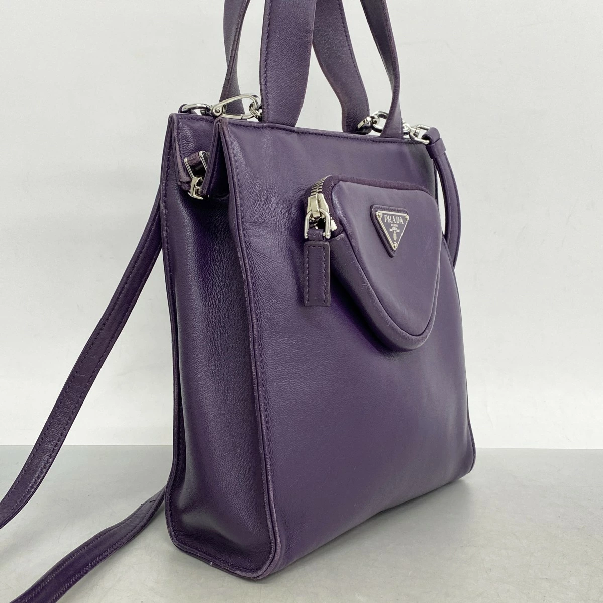 ★最終価格【5mb1771】プラダ ハンドバッグ レザー パープル シルバー金具 2wayバッグ【中古】レディース