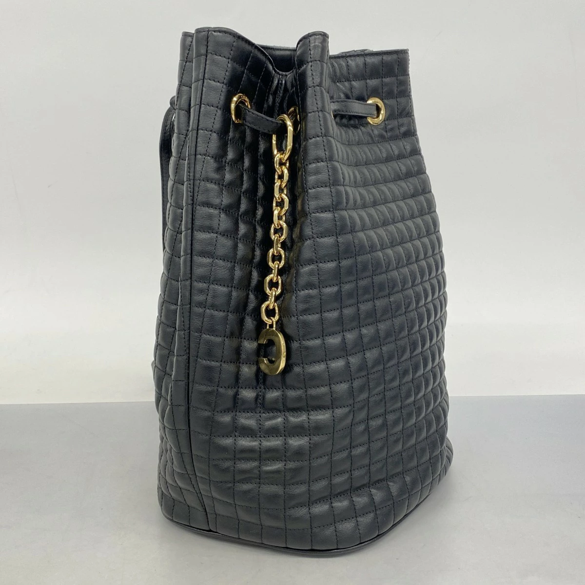 ★最終価格【5mb1892-h】セリーヌ ショルダーバッグ レザー ブラック ゴールド金具【中古】レディース