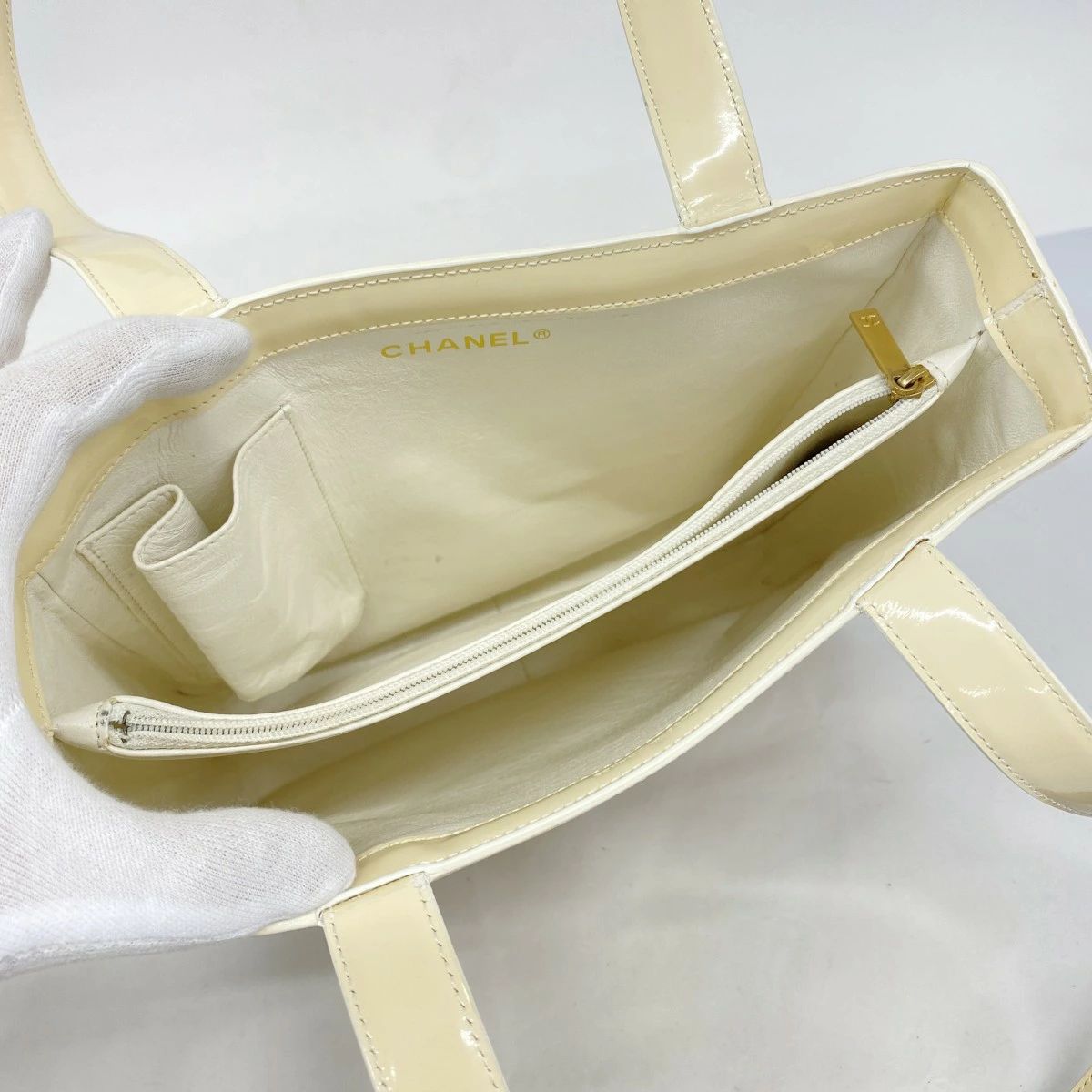 ★最終価格【5mb2112-h】シャネル トートバッグ パテントレザー ベージュ ゴールド金具【中古】レディース