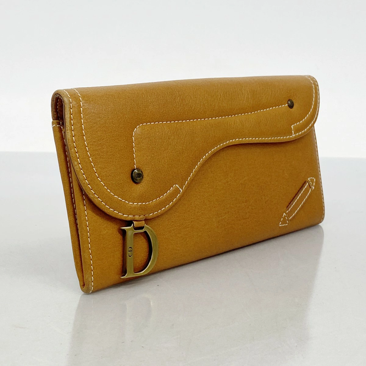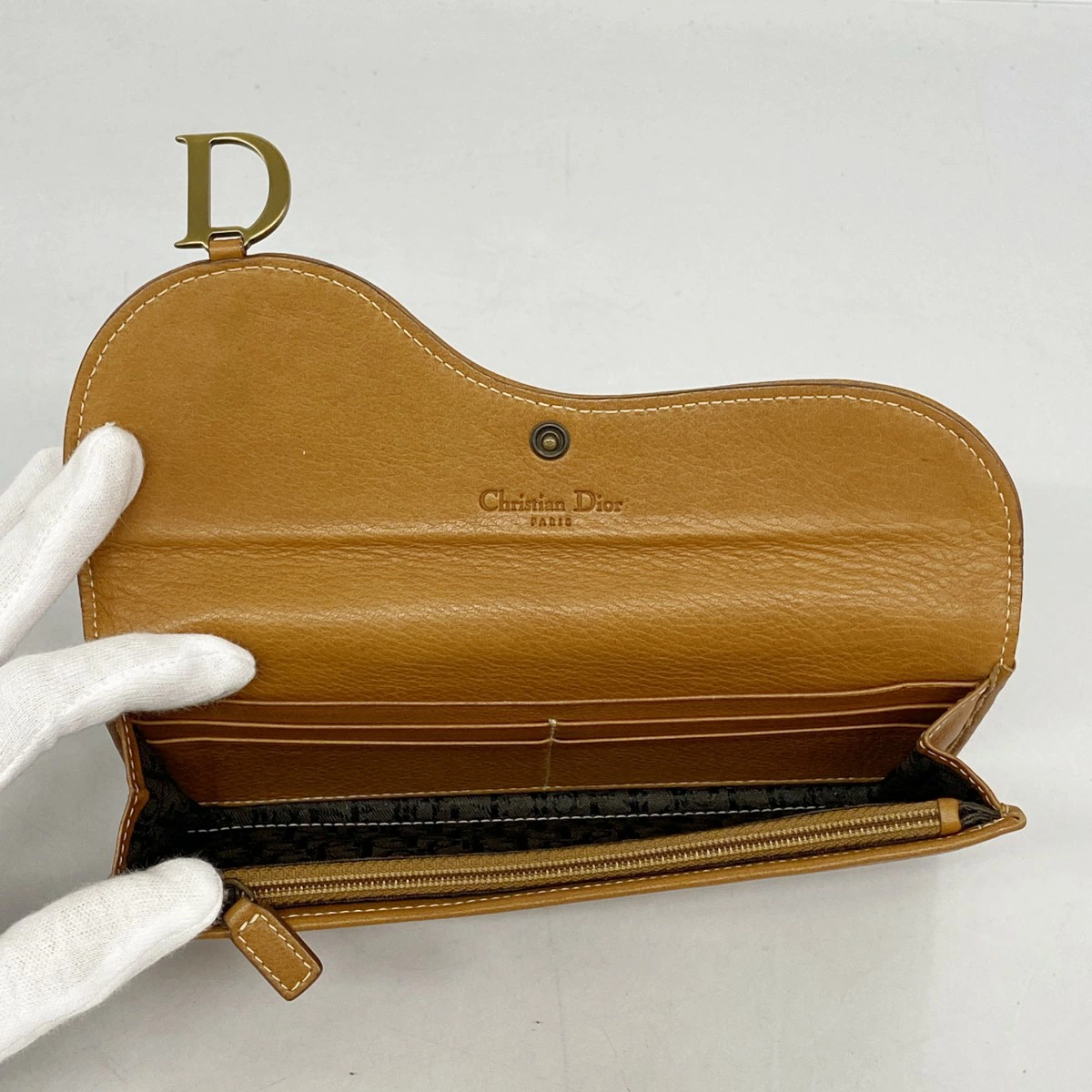 ★最終価格【5mc2480-h】クリスチャンディオール 長財布 サドル レザー ブラウン ゴールド金具【中古】レディース