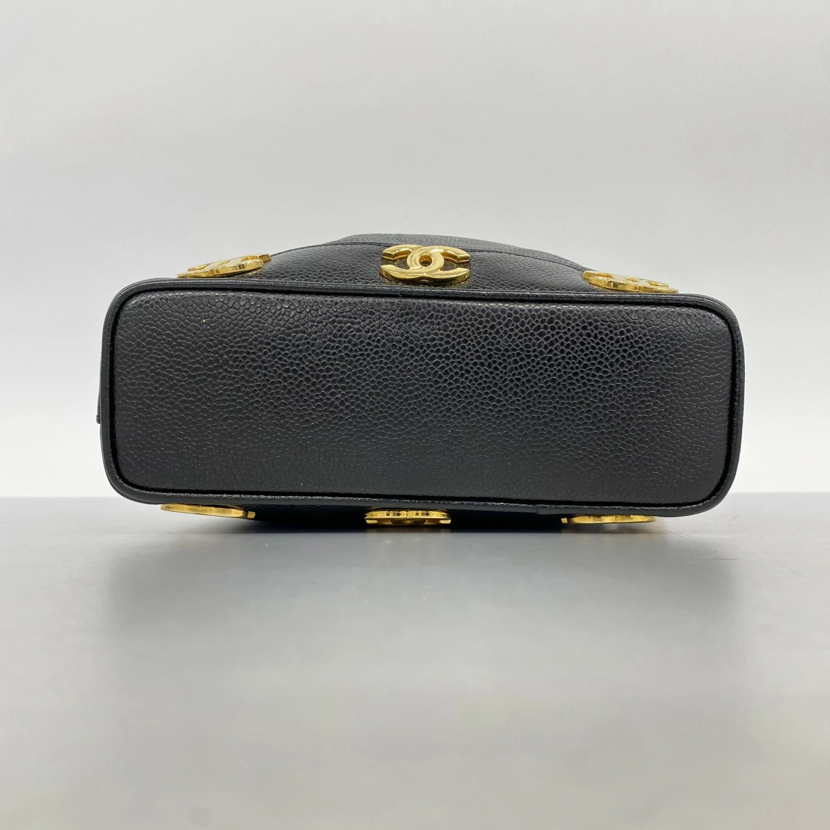 [5mc2796] Chanel Triple Coco Shoulder Bag, Caviar Leather, Black with Gold Hardware, Pre-owned, Women's