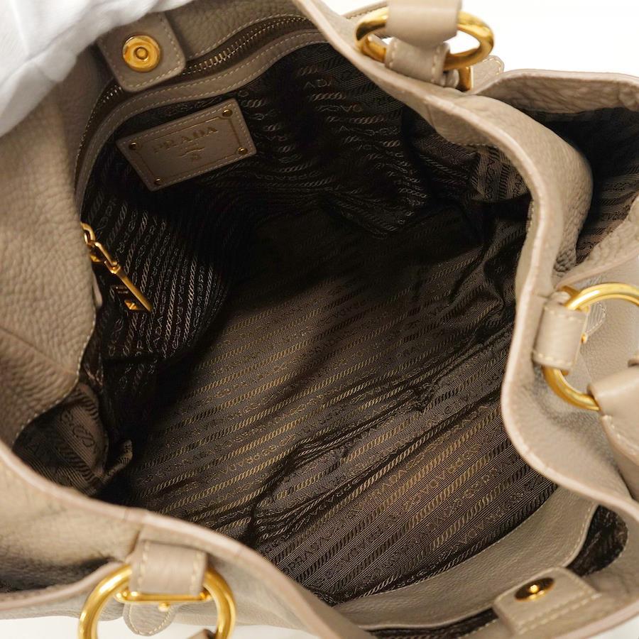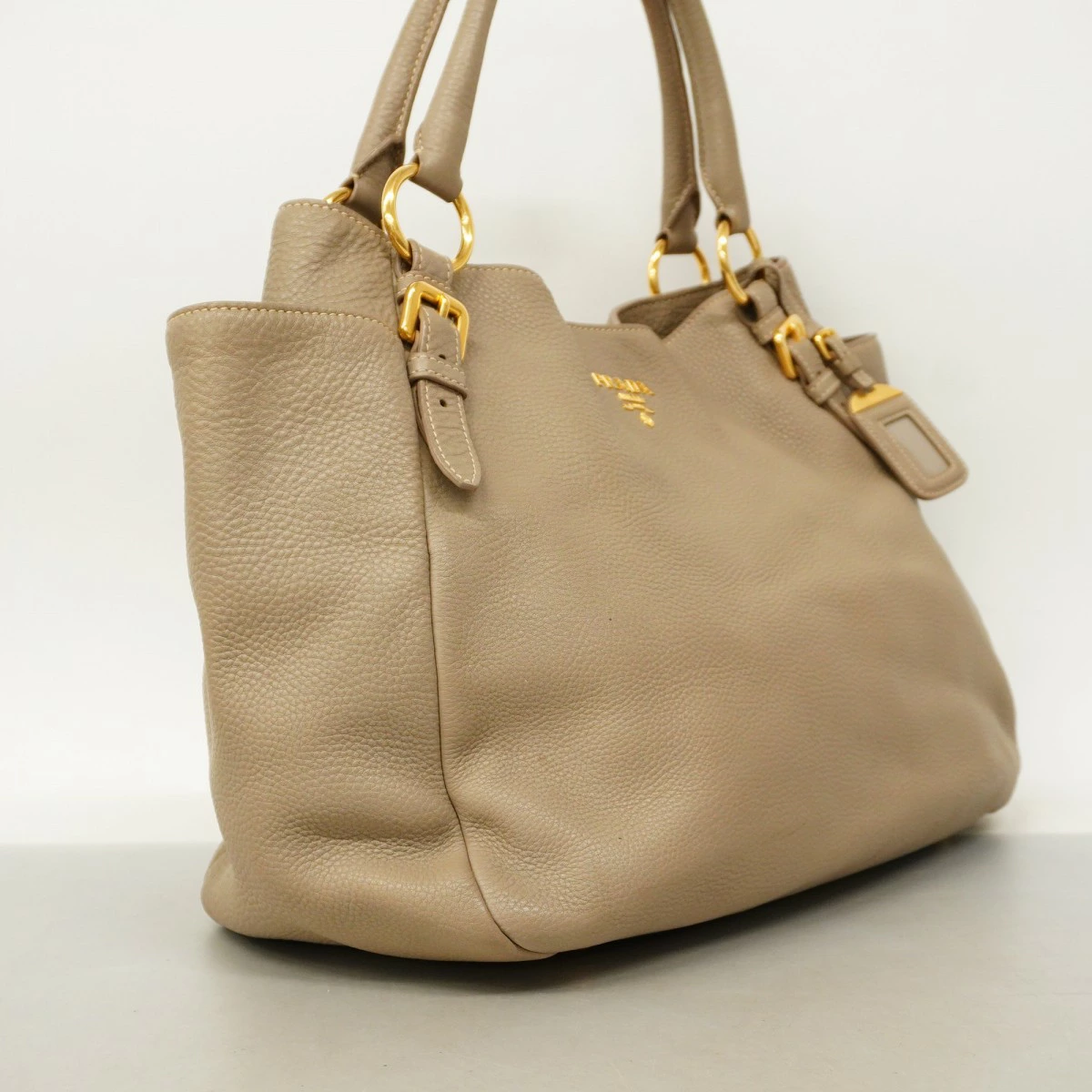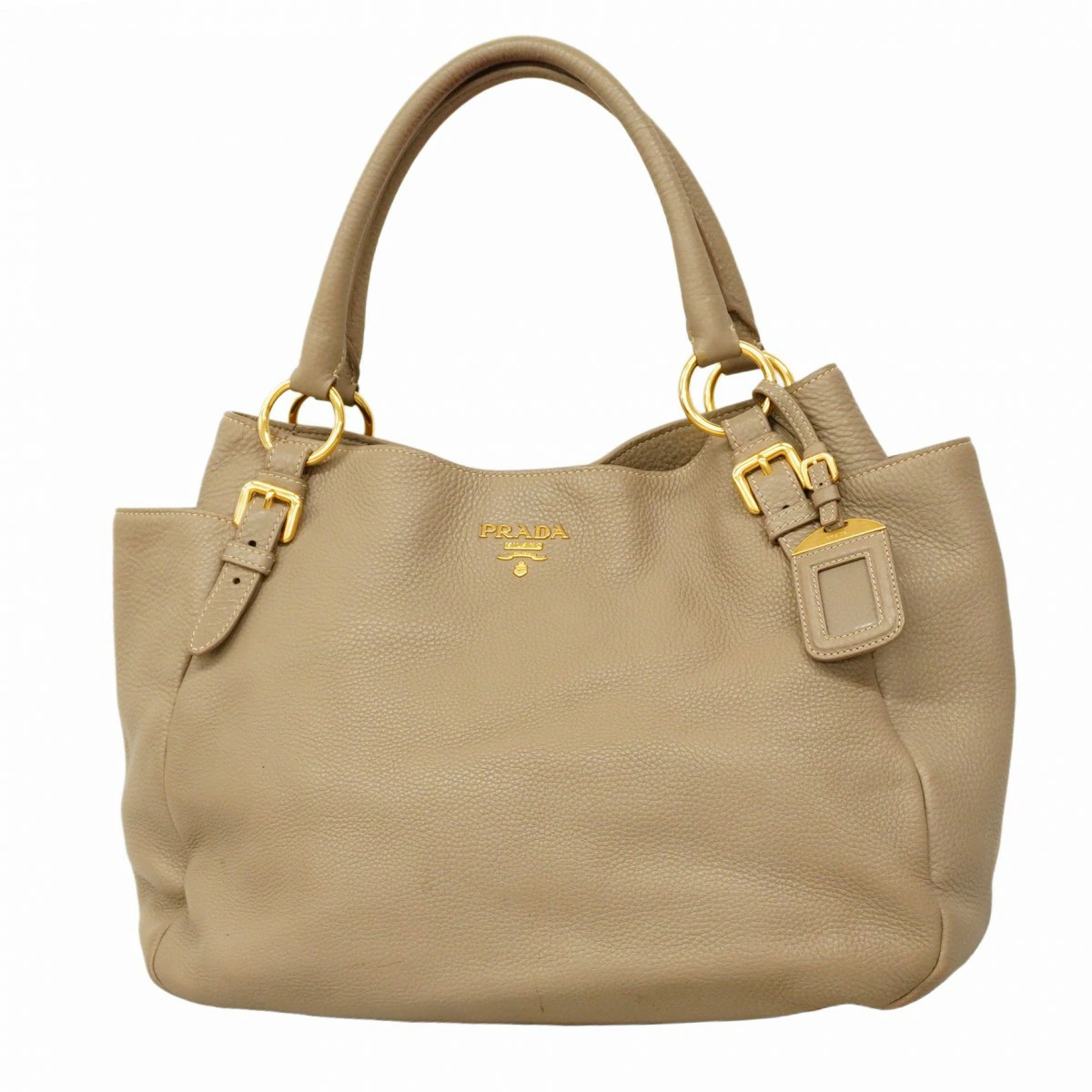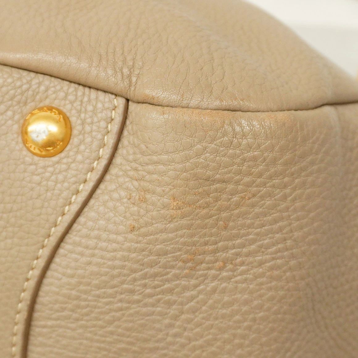 [5mc3170] Prada Tote Bag, Beige Leather with Gold Hardware, Pre-owned, Women's