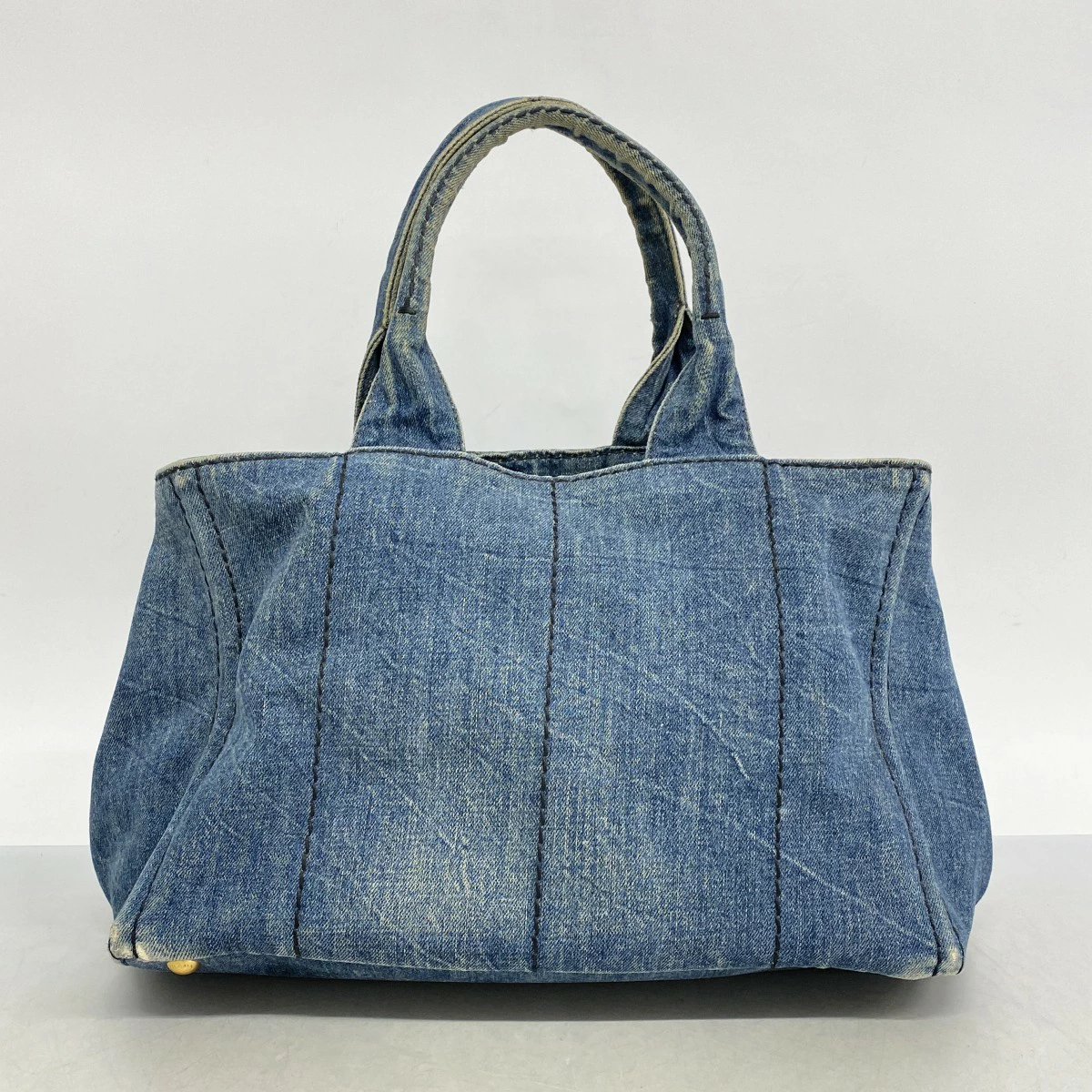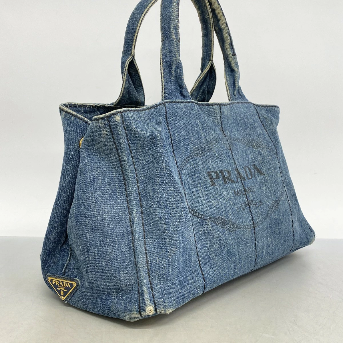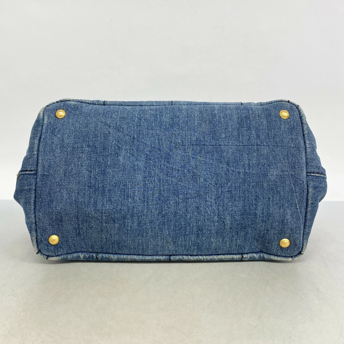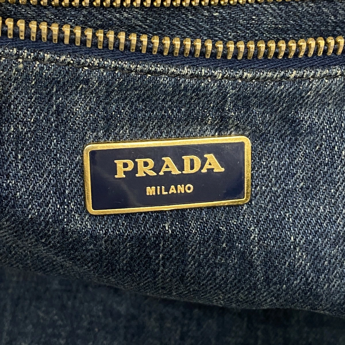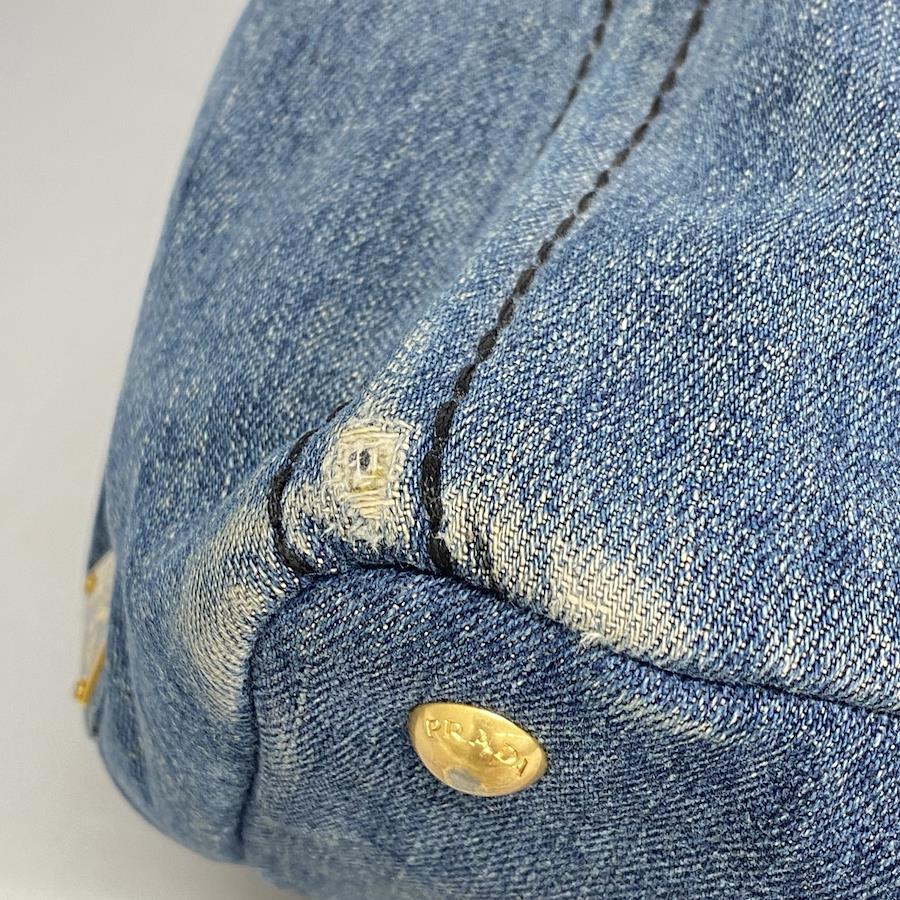 ★最終価格【5mc3567】プラダ トートバッグ カナパ デニム ブルー ゴールド金具【中古】レディース