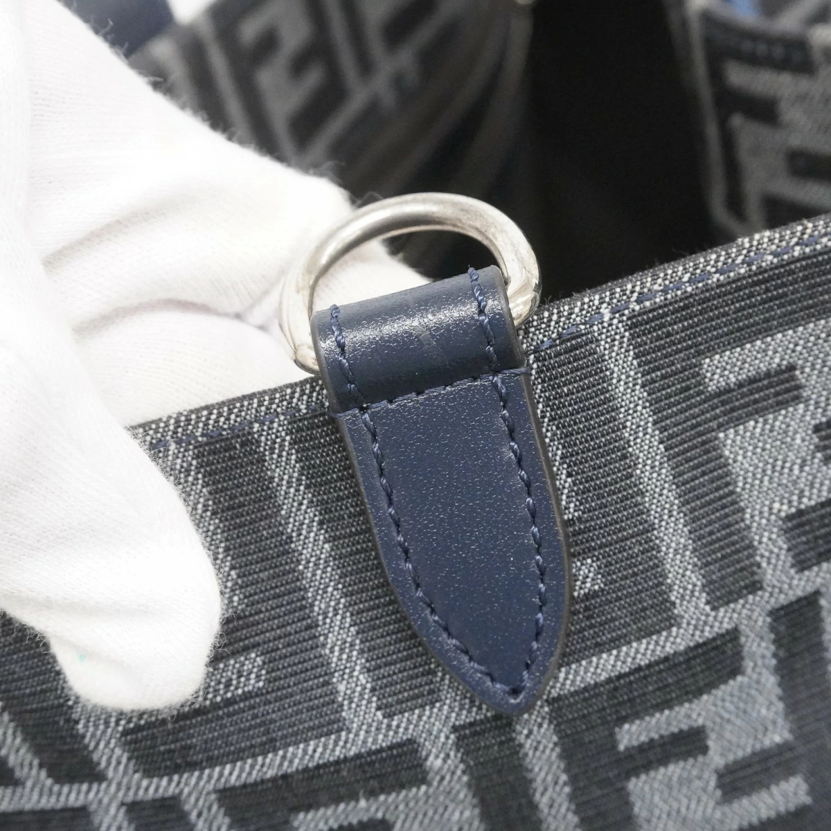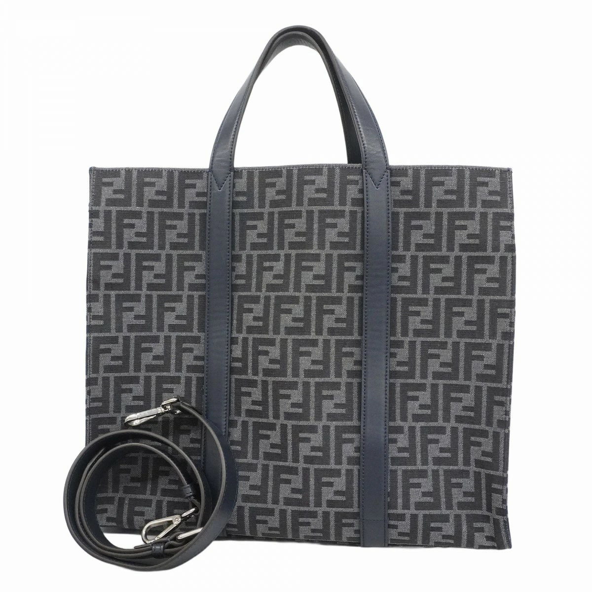 ★最終価格【5md5234-h】フェンディ トートバッグ ズッカ ナイロンキャンバス グレー ネイビー シルバー金具 2wayバッグ【中古】メンズ