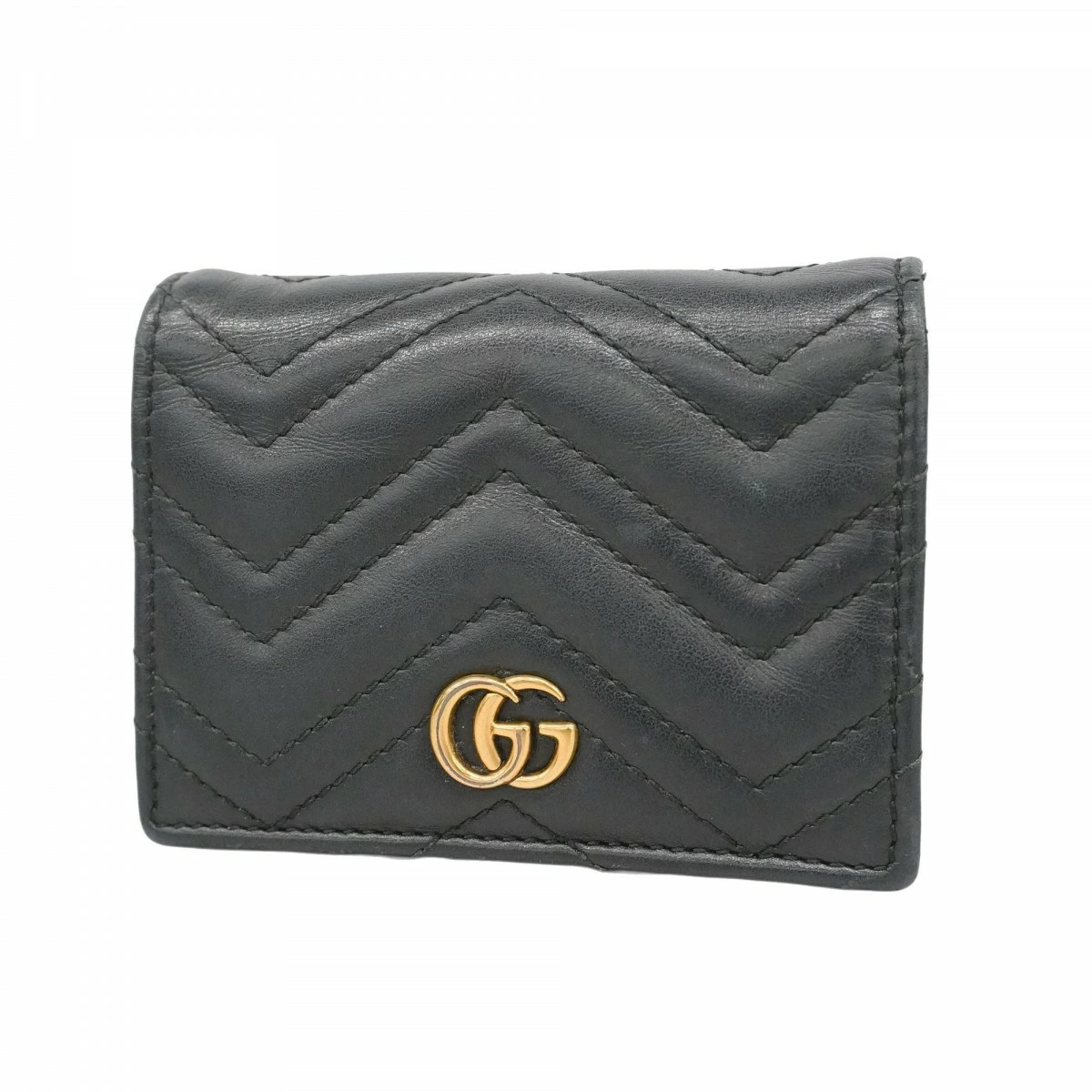 ★最終価格【5me6524】グッチ 財布 GGマーモント 466492 レザー ブラック ゴールド金具【中古】レディース
