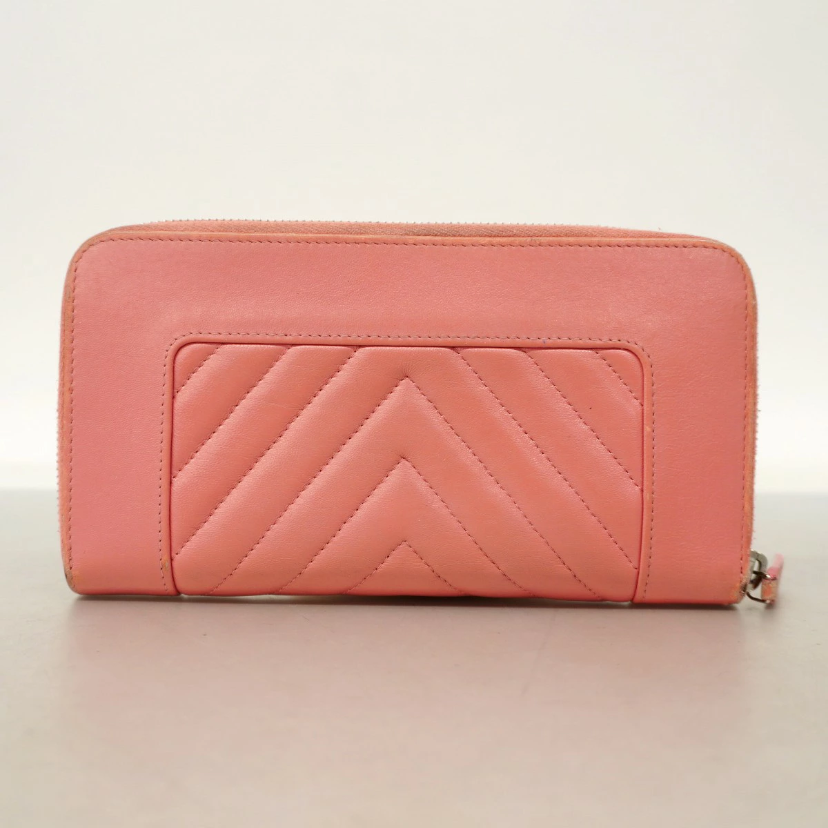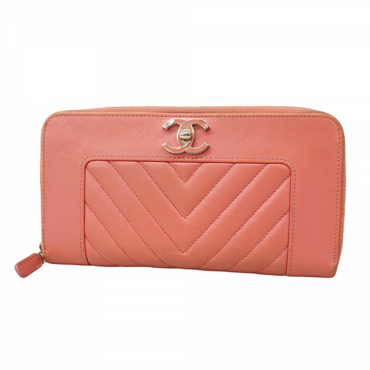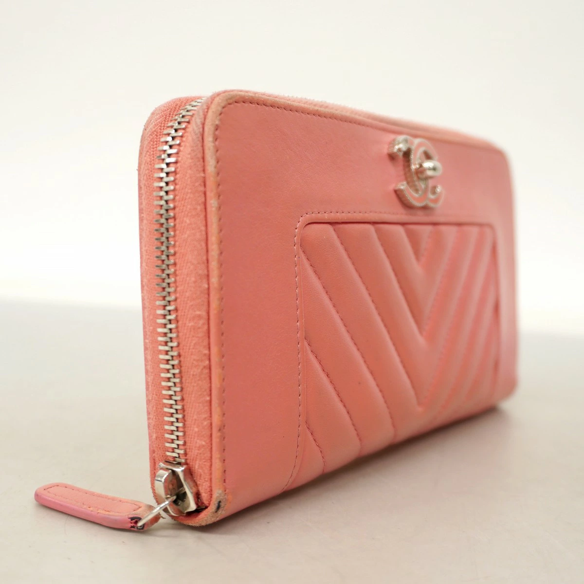 ★最終価格【5ob0012-h】シャネル 長財布 Vステッチ ラムスキン ピンク シルバー金具【中古】レディース