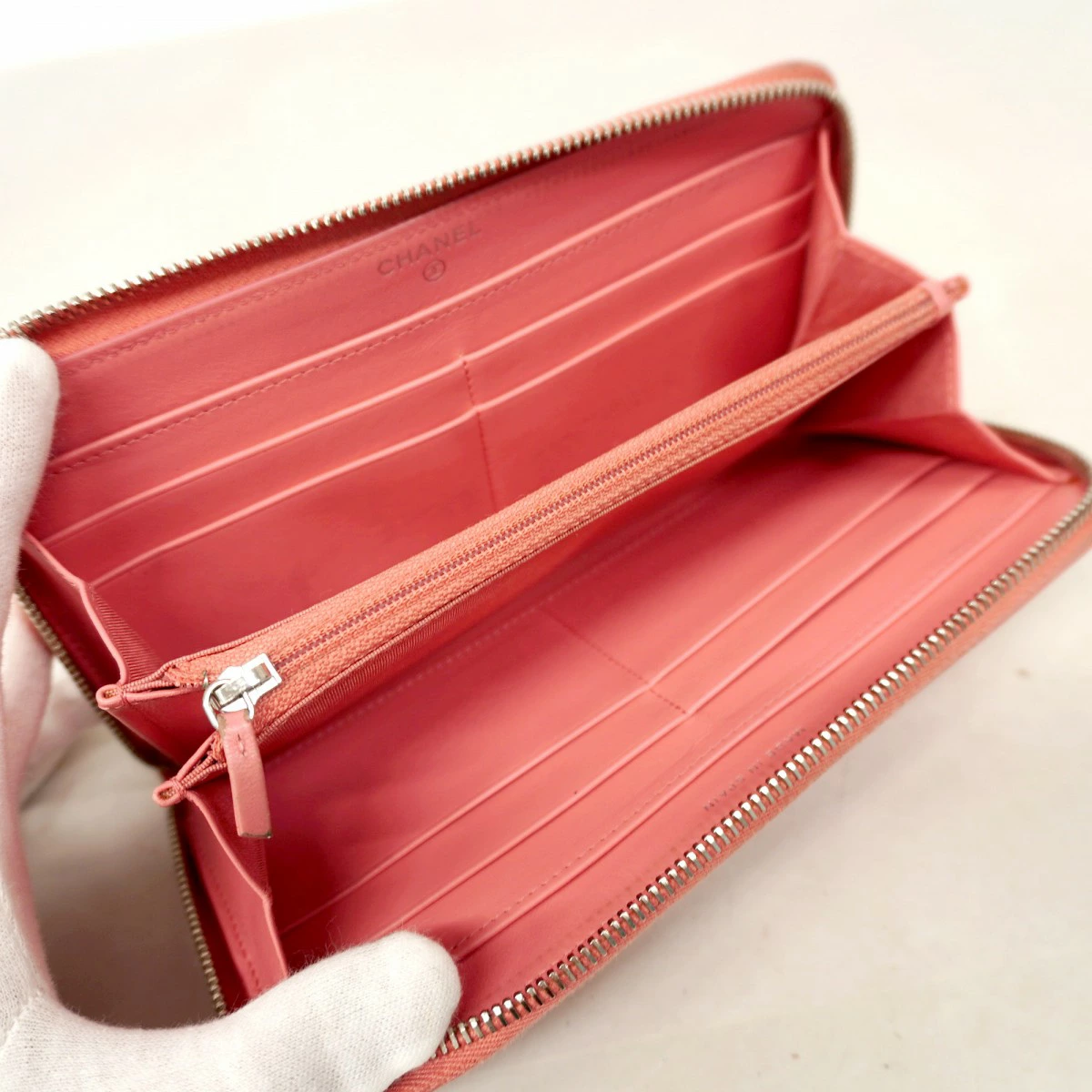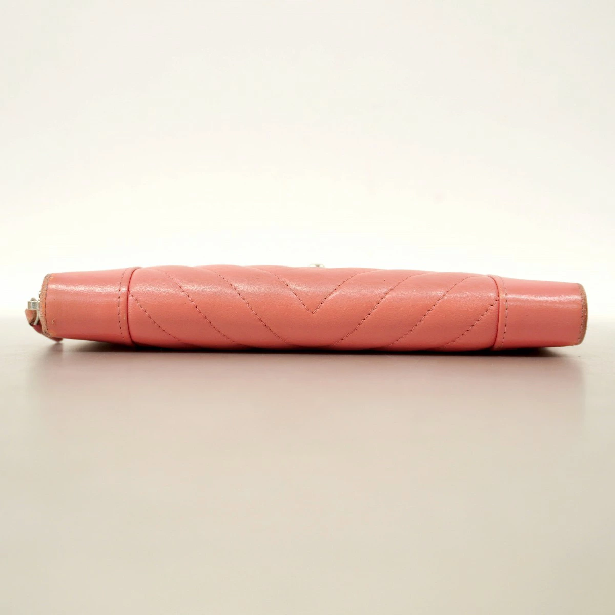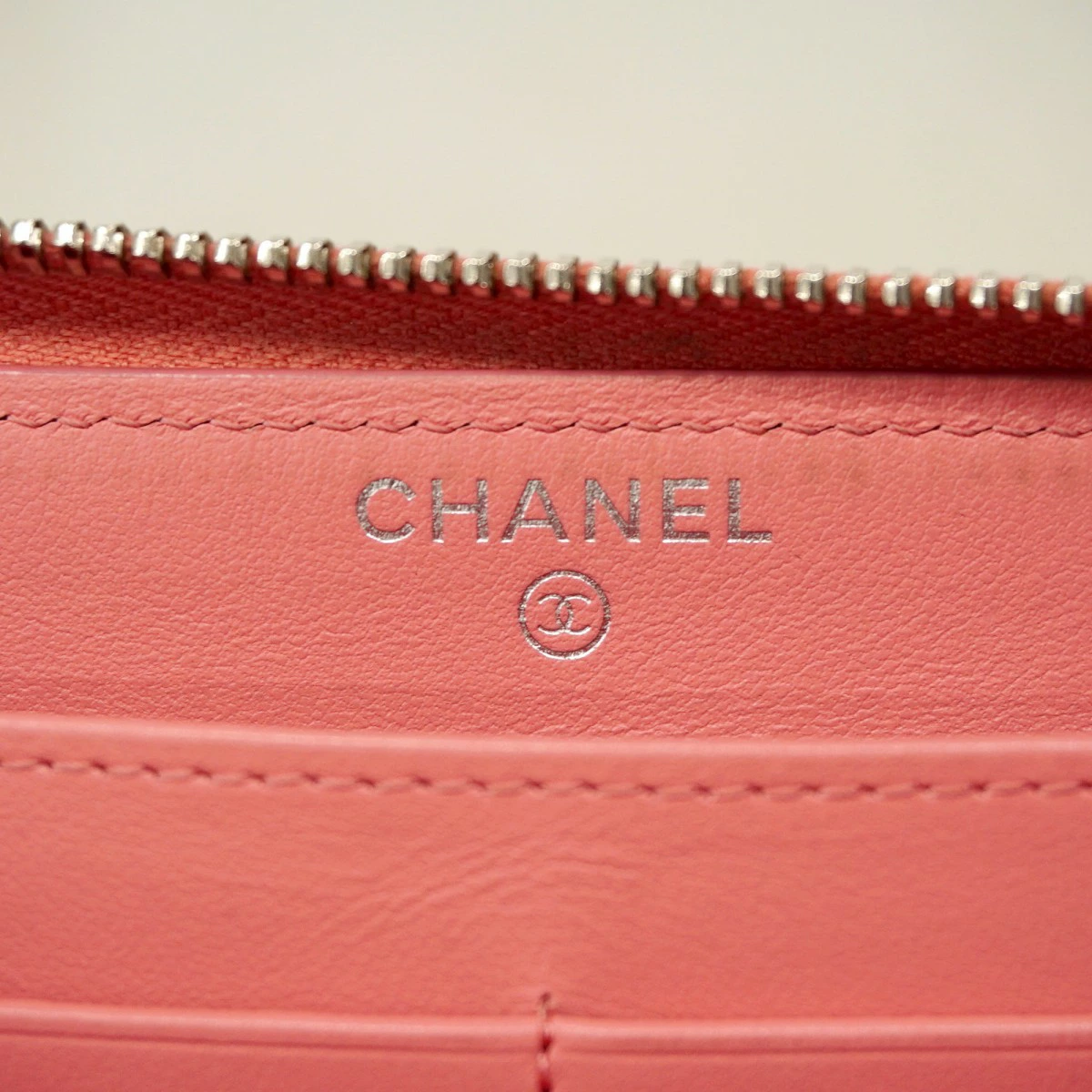 ★最終価格【5ob0012-h】シャネル 長財布 Vステッチ ラムスキン ピンク シルバー金具【中古】レディース