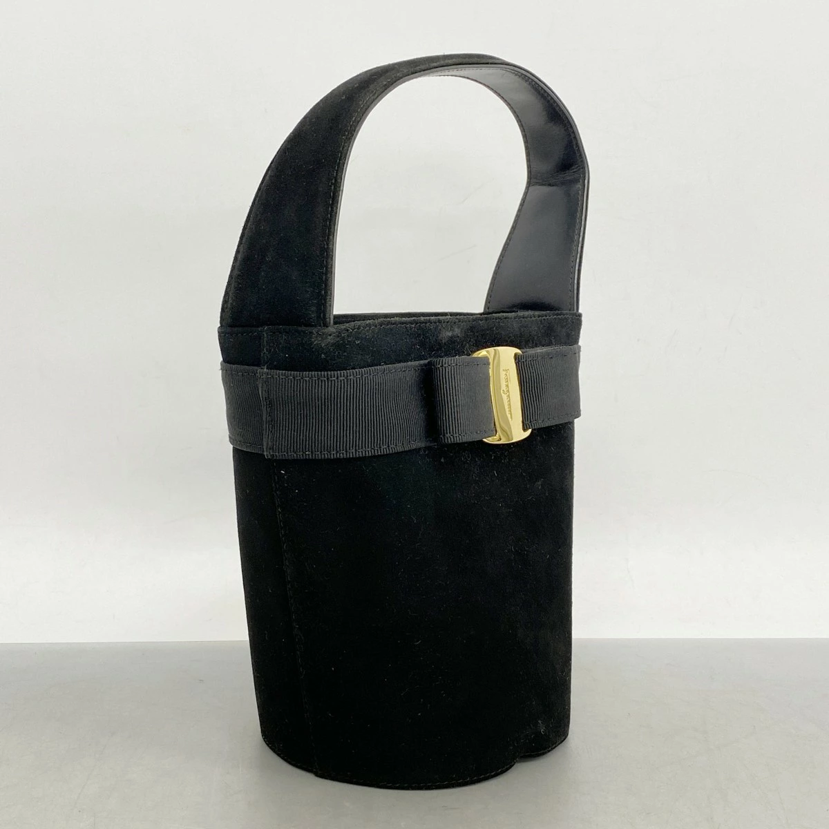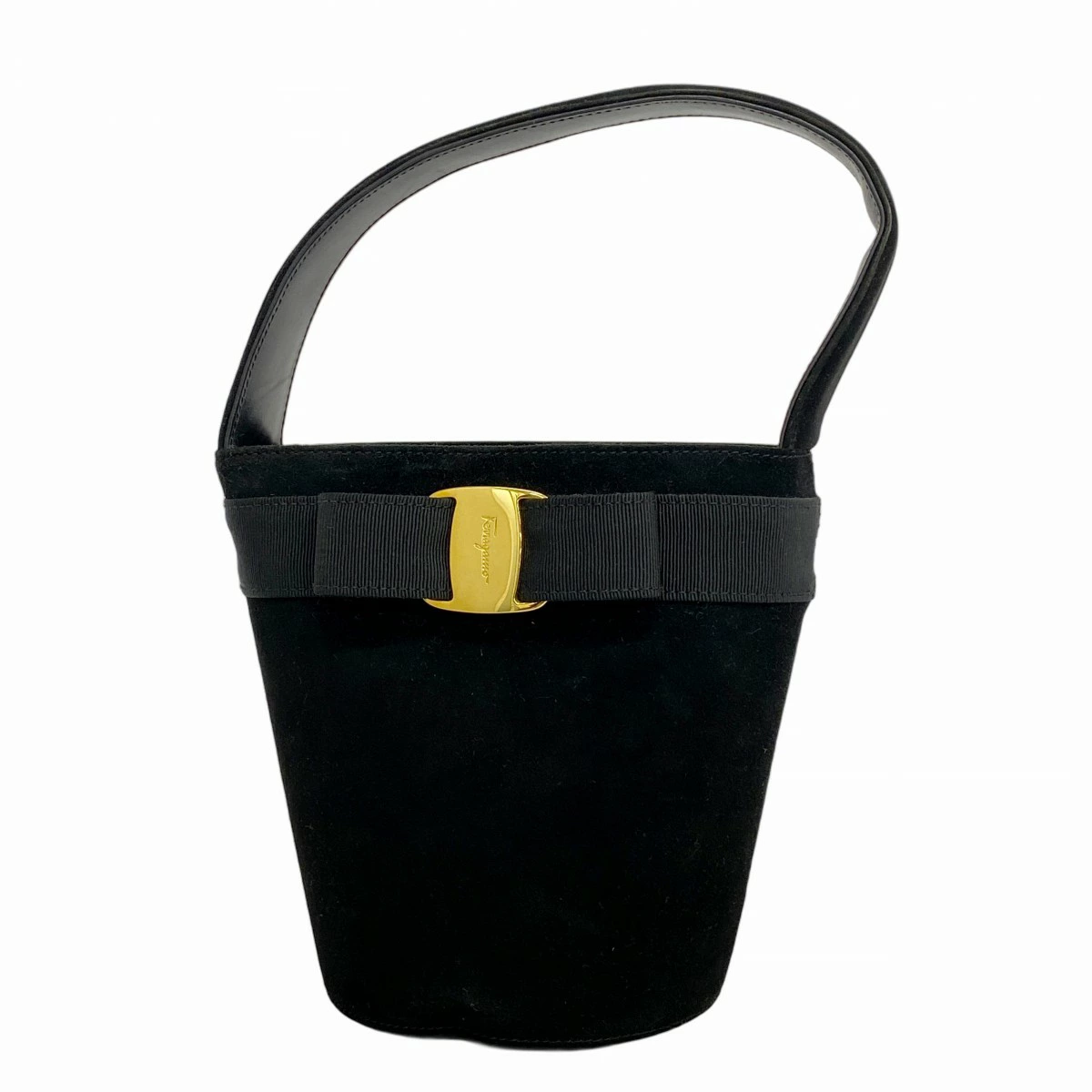 ★最終価格【5ob0091】サルヴァトーレフェラガモ ハンドバッグ ヴァラ スウェード ブラック ゴールド金具【中古】レディース