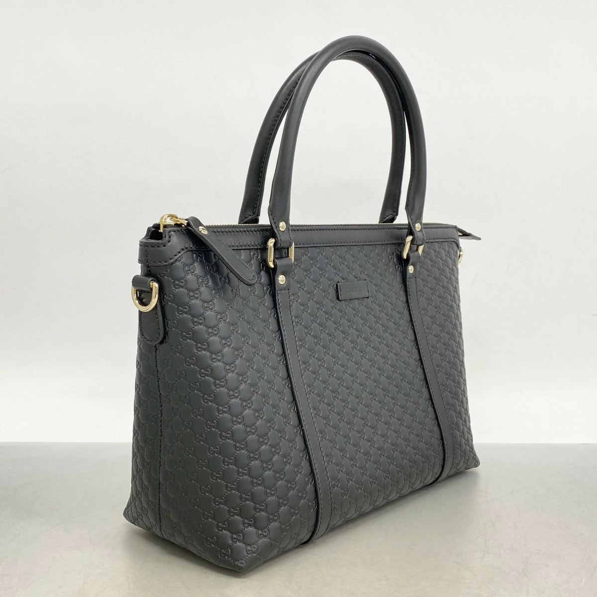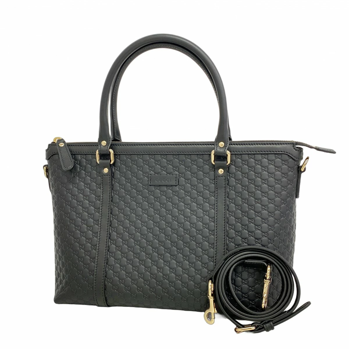 ★最終価格【5ob0105】グッチ ハンドバッグ マイクログッチシマ 449656 レザー ブラック シャンパンゴールド金具 2wayバッグ【中古】レディース