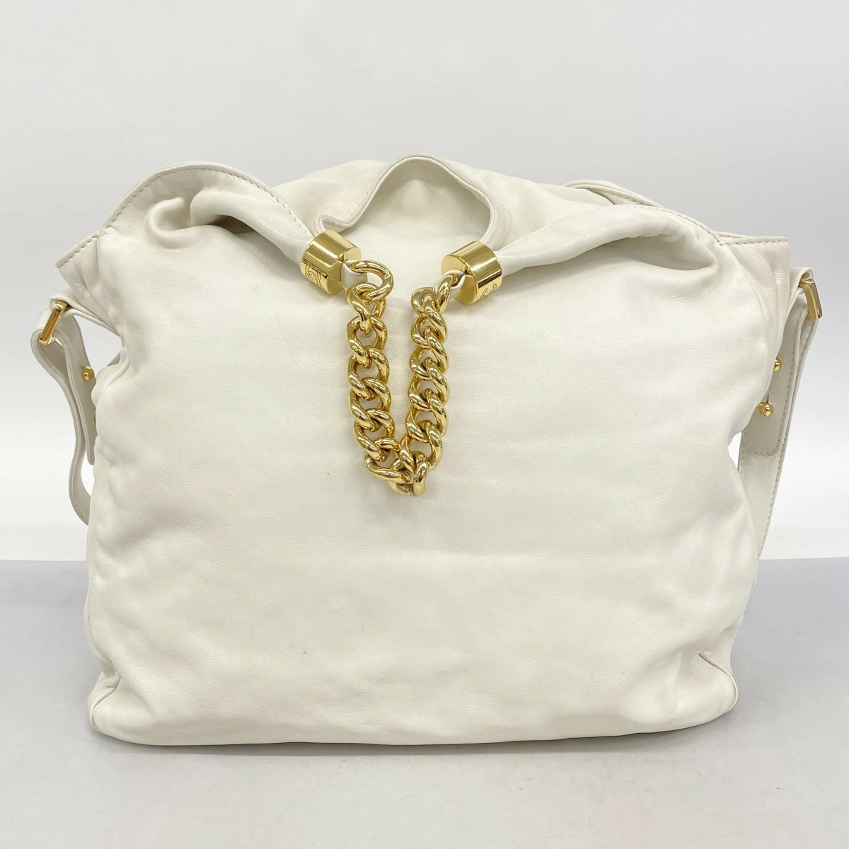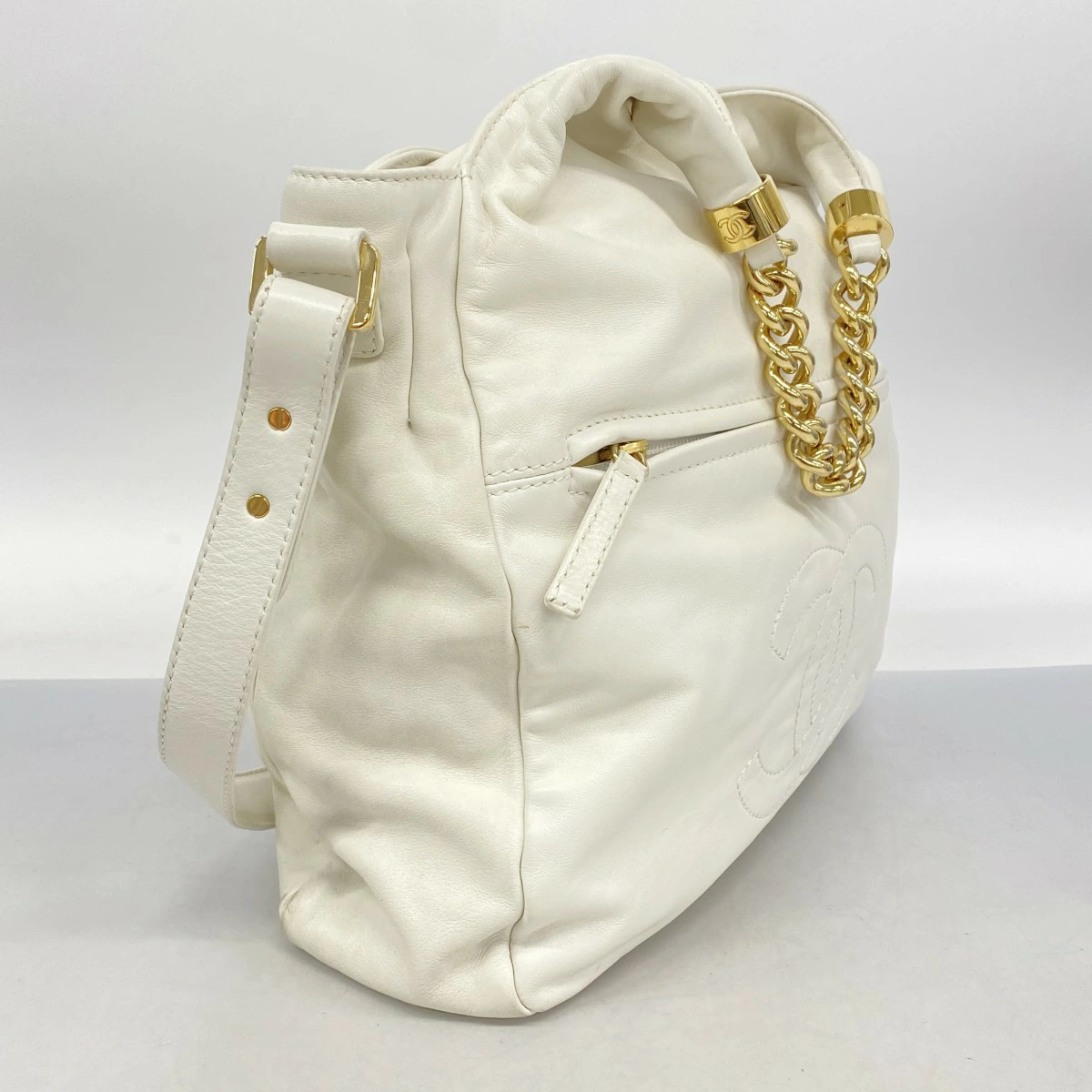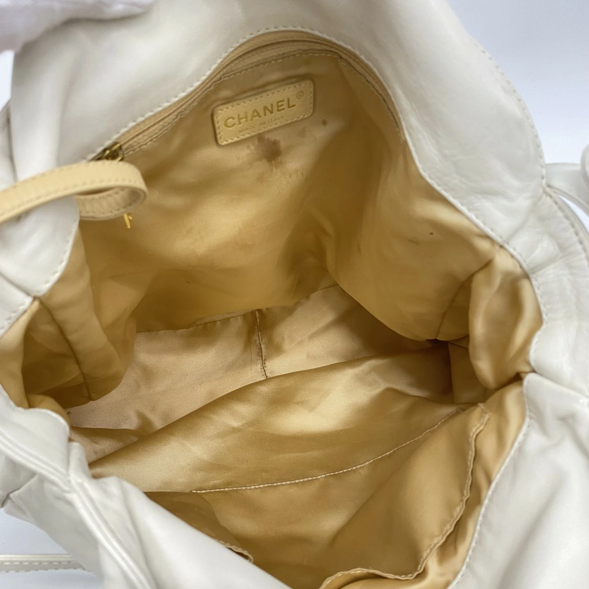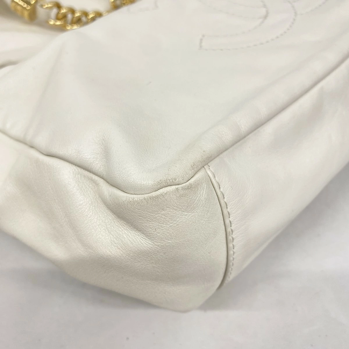 ★最終価格【5ob0465-h】シャネル ショルダーバッグ チェーン レザー ホワイト ゴールド金具 2wayバッグ【中古】レディース