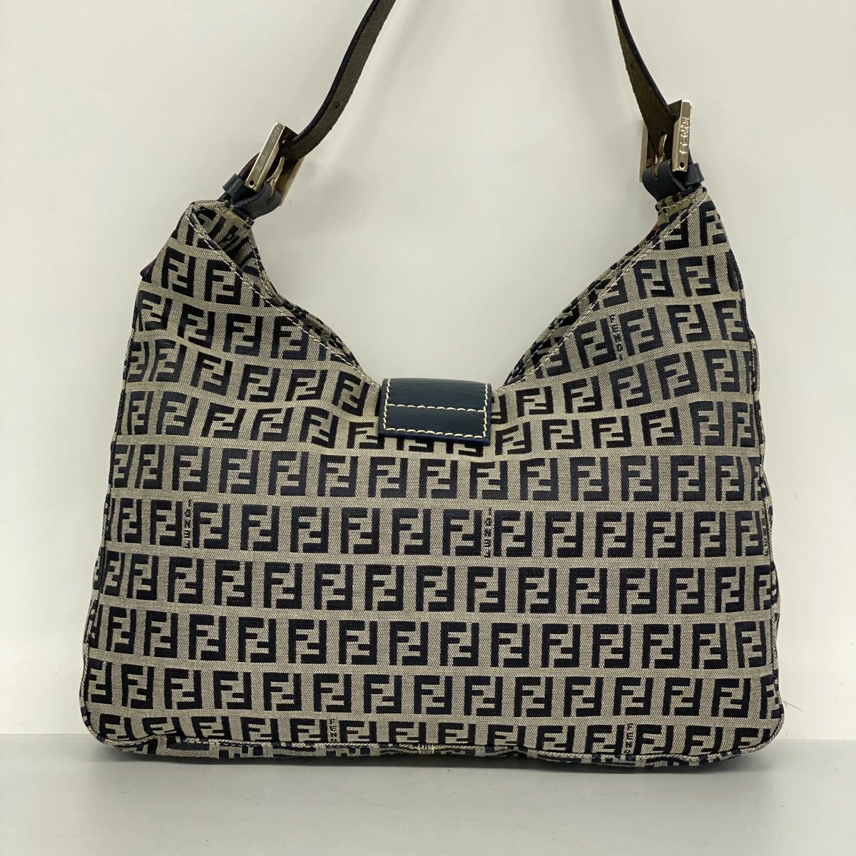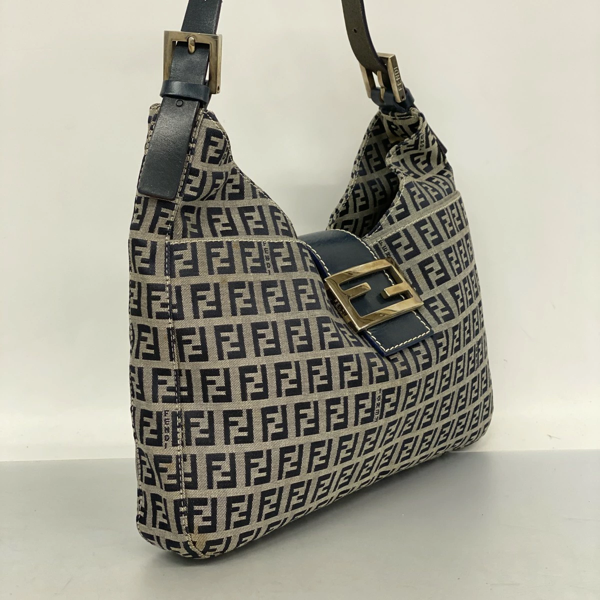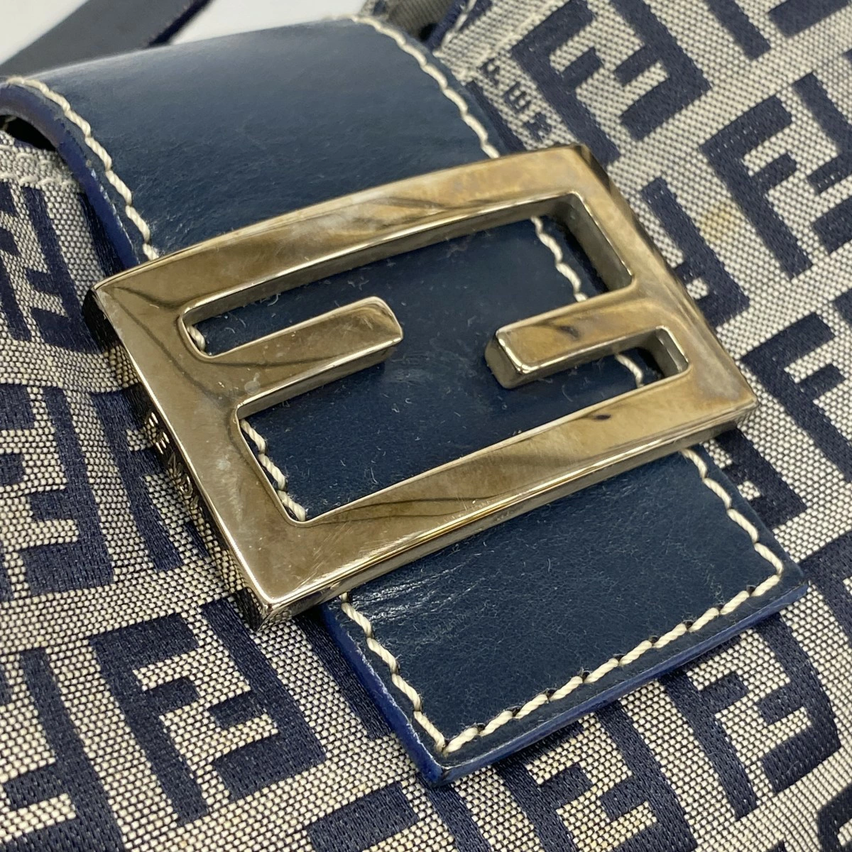 ★最終価格【5ob0498】フェンディ ショルダーバッグ ズッキーノ ナイロンキャンバス ネイビー シルバー金具【中古】レディース