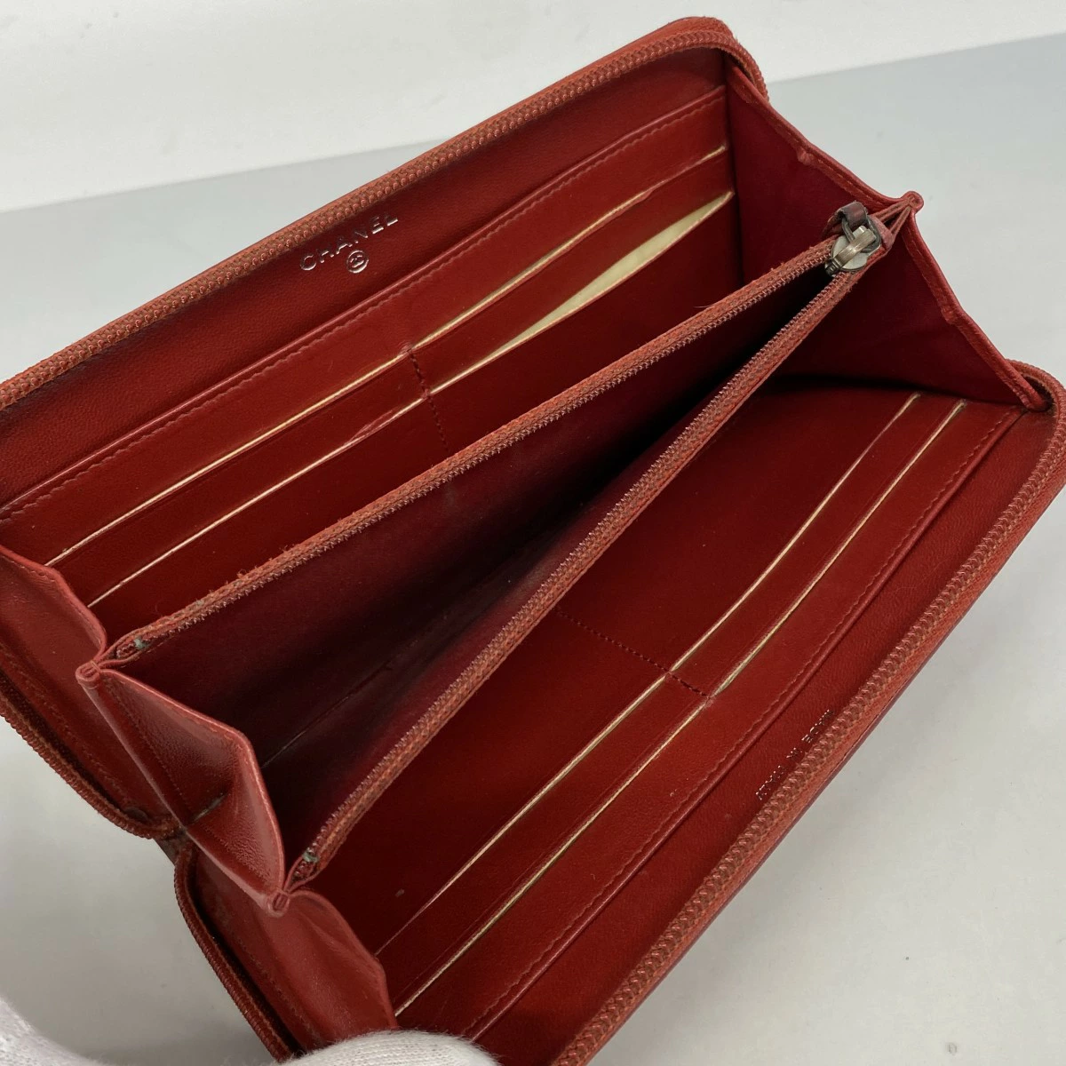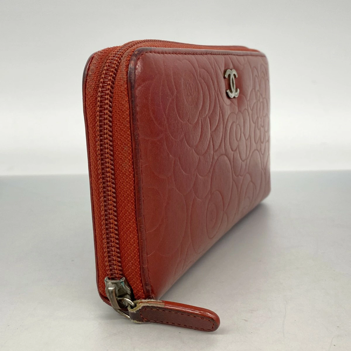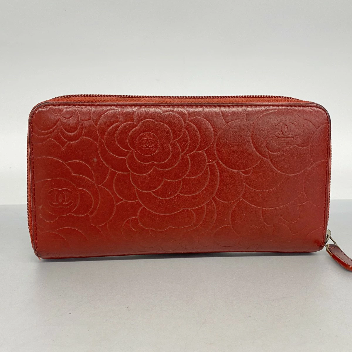 ★最終価格【5ob0608】シャネル 長財布 カメリア レザー レッド シルバー金具【中古】レディース