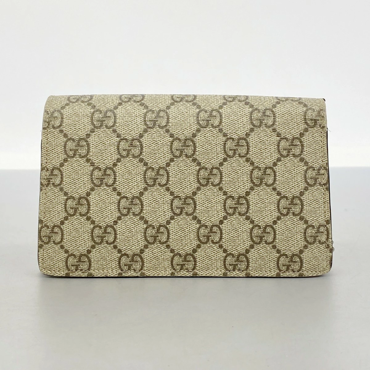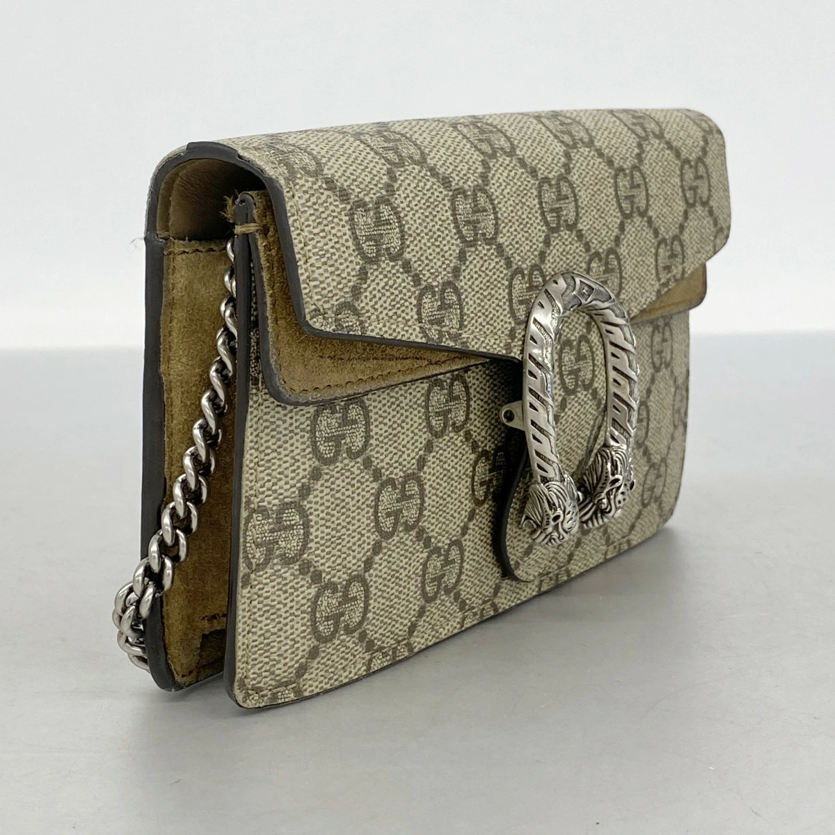 [5ob1100] Gucci GG Supreme Dionysus Shoulder Wallet 476432 PVC Beige Brown Silver Hardware [Pre-owned] Women's