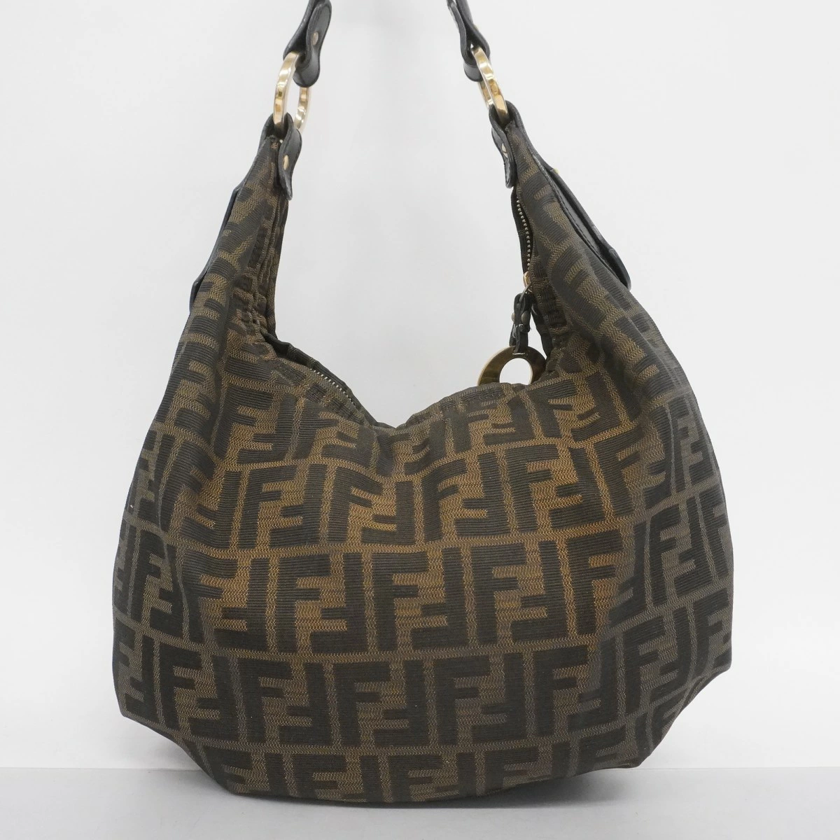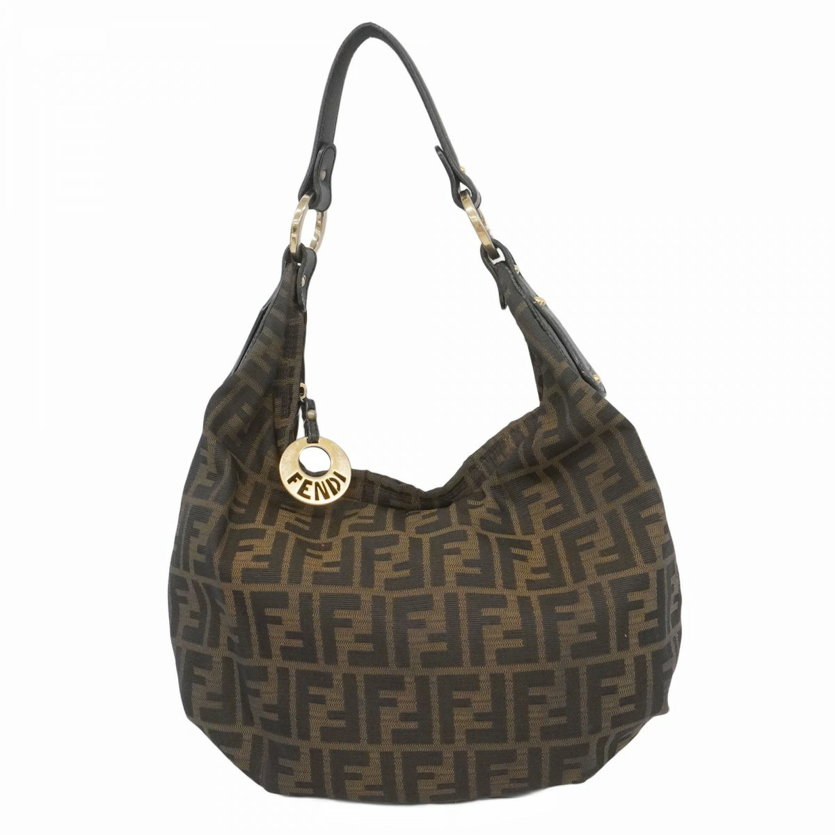 ★最終価格【5oc2050】フェンディ ショルダーバッグ ズッカ ナイロンキャンバス ブラウン ゴールド金具【中古】レディース