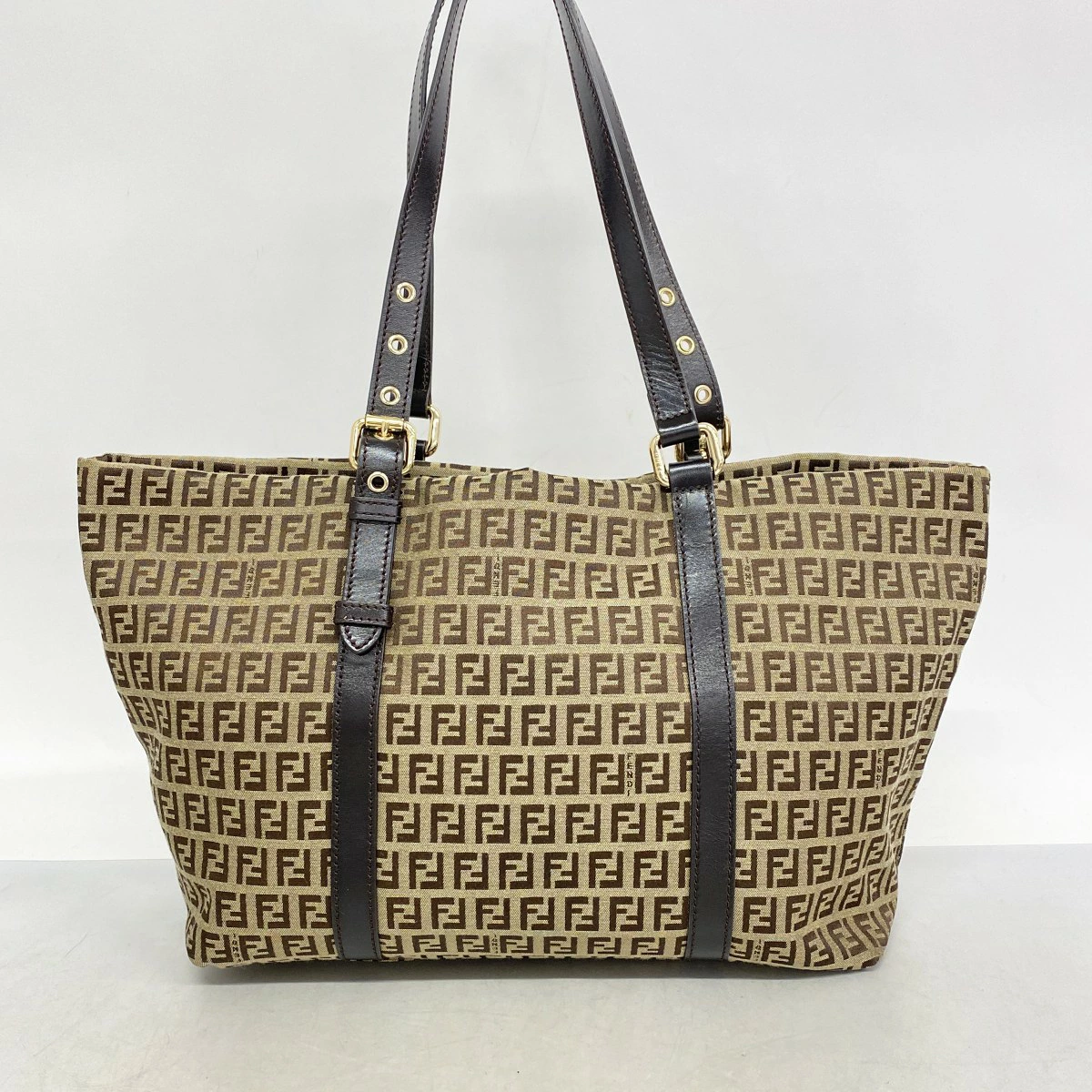 ★最終価格【5oe6142】フェンディ トートバッグ ズッキーノ ナイロンキャンバス ベージュ ブラウン シャンパンゴールド金具【中古】レディース