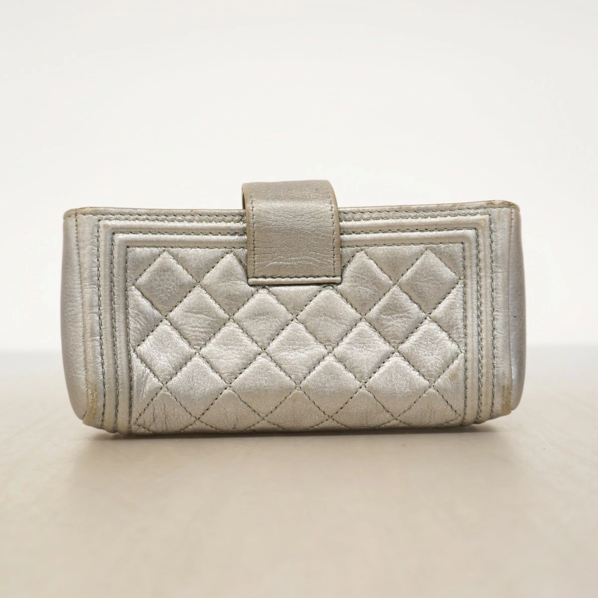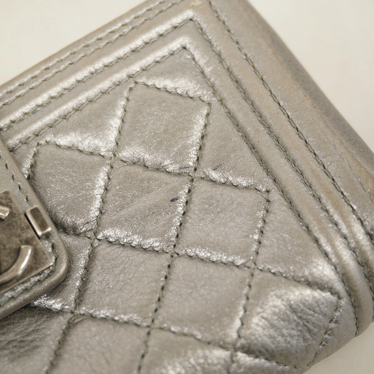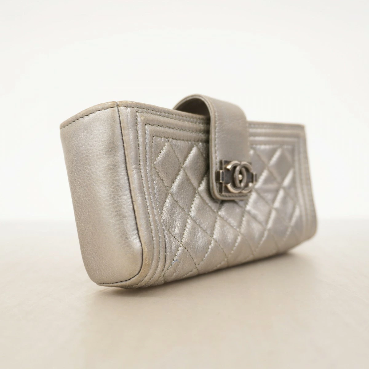 ★最終価格【5oe6157-h】シャネル ポーチ ボーイシャネル ラムスキン グレー シルバー金具【中古】レディース