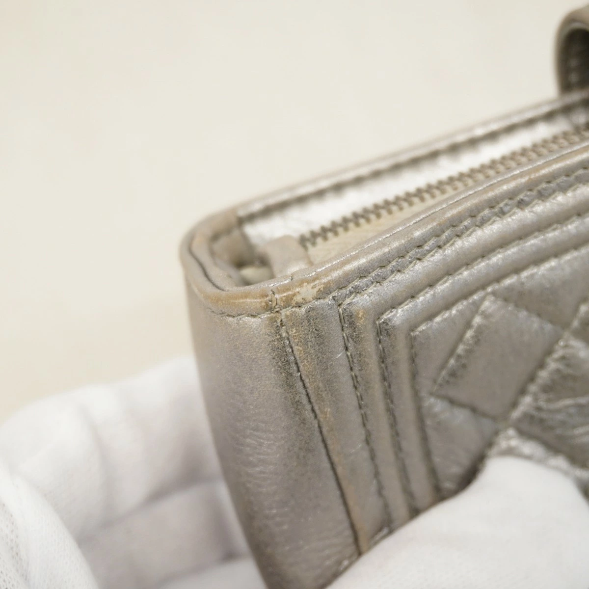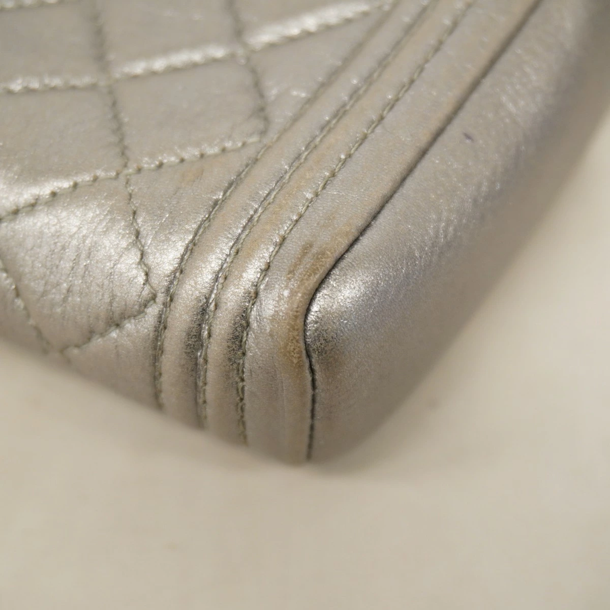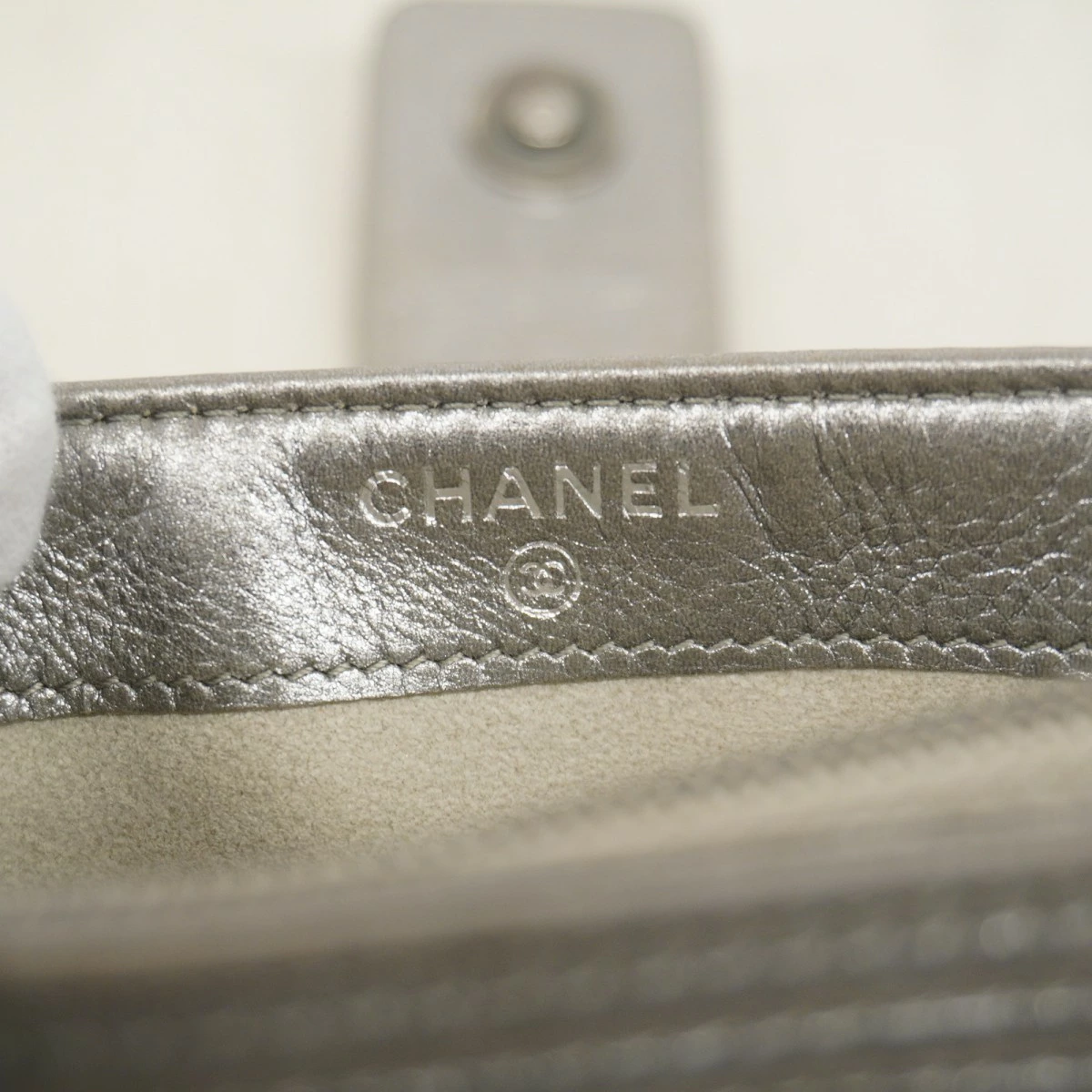 ★最終価格【5oe6157-h】シャネル ポーチ ボーイシャネル ラムスキン グレー シルバー金具【中古】レディース