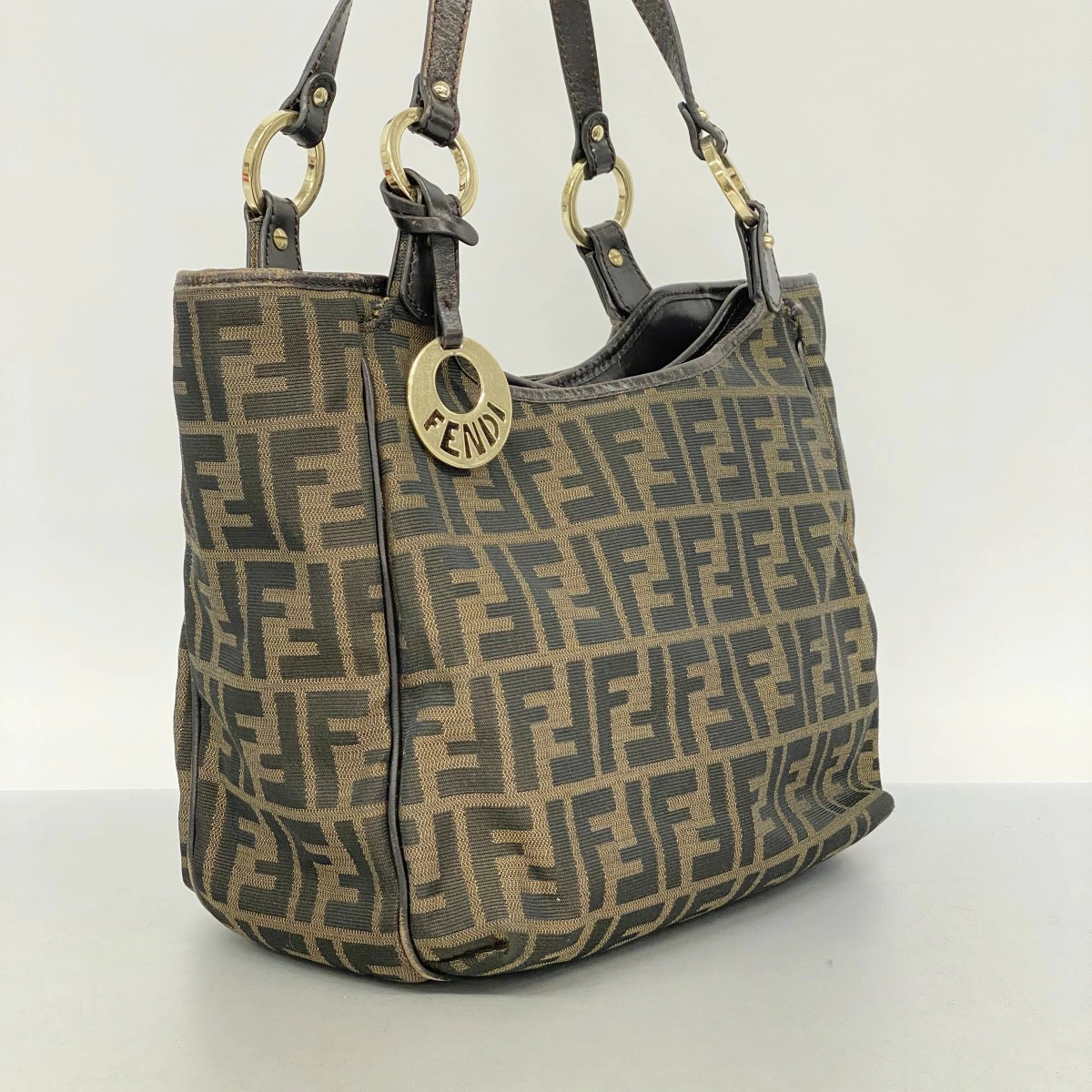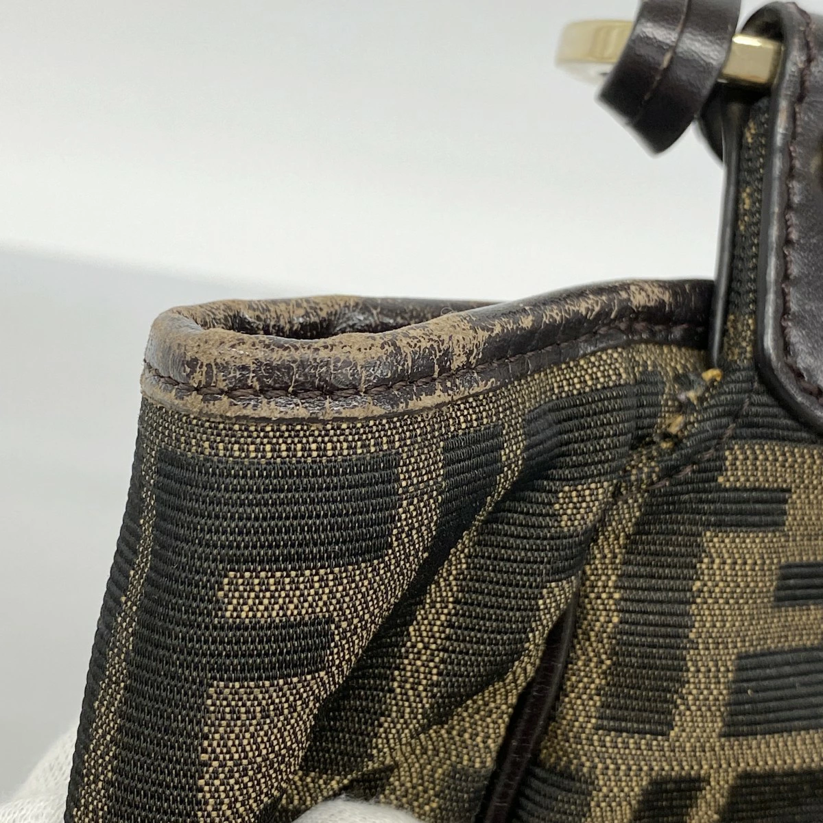 ★最終価格【5pa0135】フェンディ トートバッグ ズッカ ナイロンキャンバス ブラウン シャンパンゴールド金具【中古】レディース